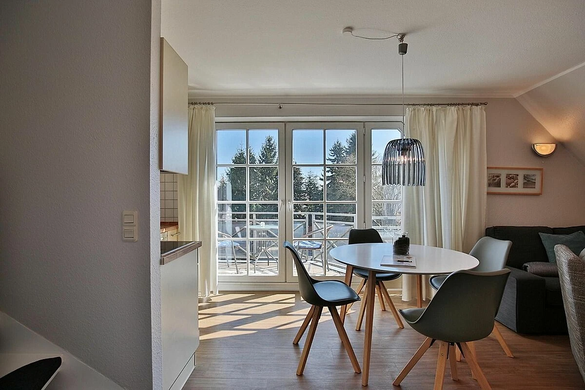 Eine gemütliche Essecke, die direkt vor dem Balkon zur Südseite steht, rundet das Wohlfühlgefühl ab.