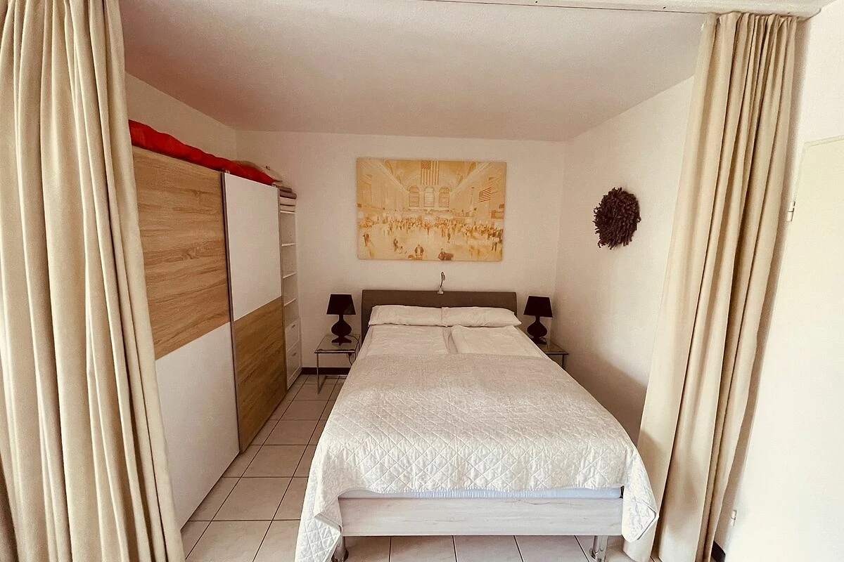 Ebenso in den Wohnbereich integriert ist ein Räumlich abgetrenntes Doppelbett.