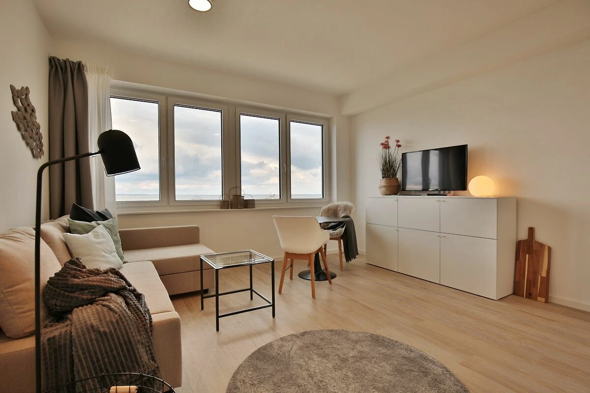 Die Wohnung ist sehr schön eingerichtet und man hat einen super Blick auf die Ostsee. Der Bäcker Junge und Edeka waren fußläufig in der Nähe.
