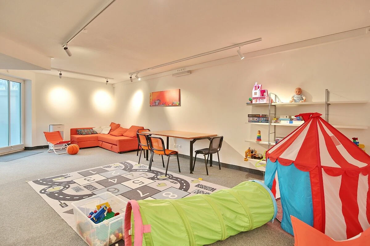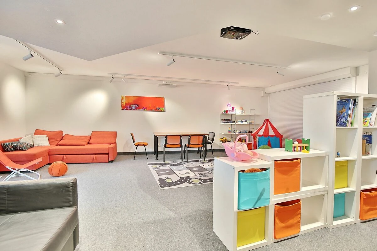 Des Weiteren finden sie im Untergeschoss einen Fitnessraum mit drei unterschiedlichen professionellen Trainingsgeräten. Für Groß und Klein gibt es ein Sport- und Spielzimmer mit hochwertiger Tischtennisplatte und Fußballkicker sowie ein vielfältiges Angebot von altersgerechtem Spielzeug.