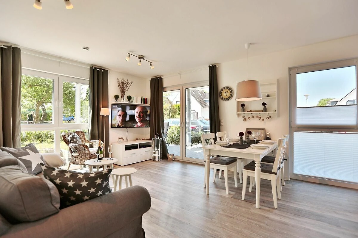 Die großzügig geschnittene und liebevoll eingerichtete EG-Wohnung befindet sich in einer ruhigen Anliegerstraße am Möwenberg 14, etwa 300 m vom Strand entfernt.
