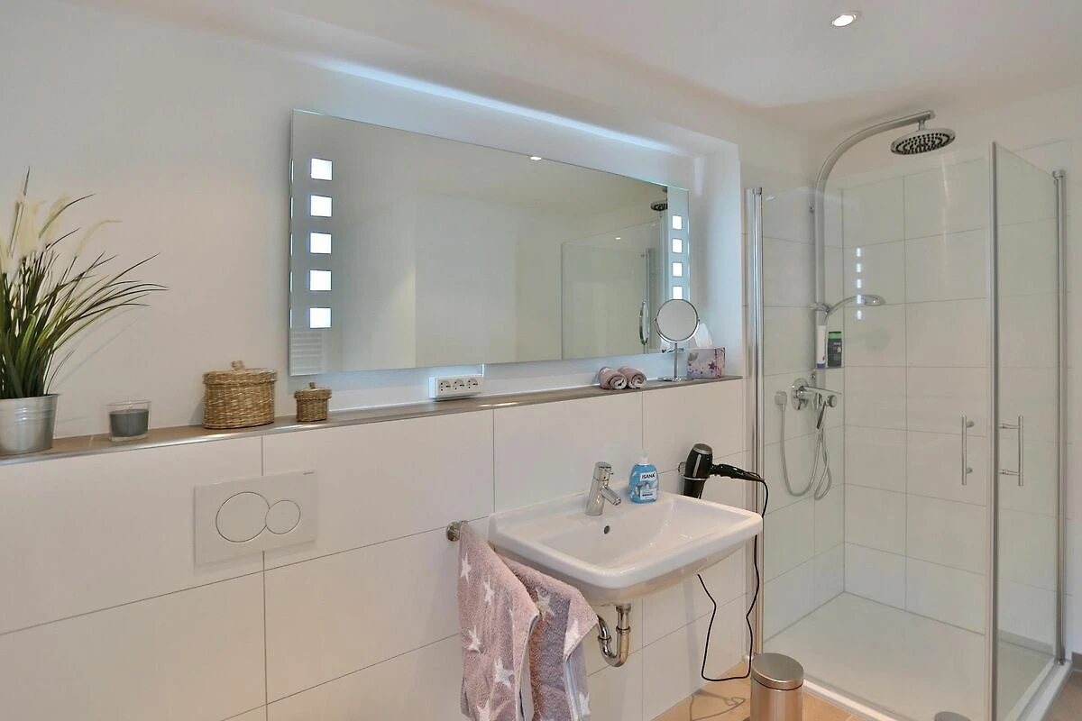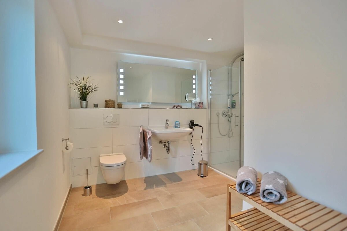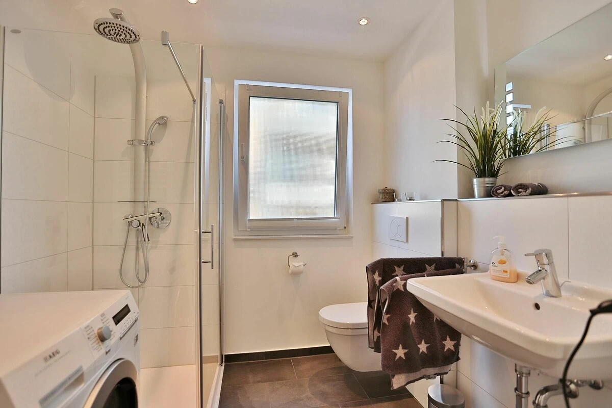 Starten Sie den Tag in unseren komplett ausgestatteten Badezimmern mit jeweils bodentiefer Dusche und Rain-Shower, Handtuchwärmer und Föhn. Ein Waschmaschine ist ebenfalls verfügbar.