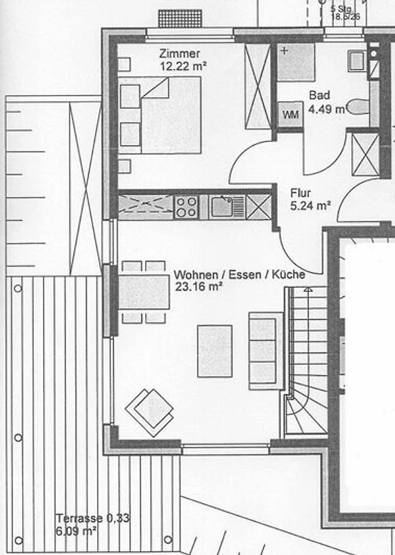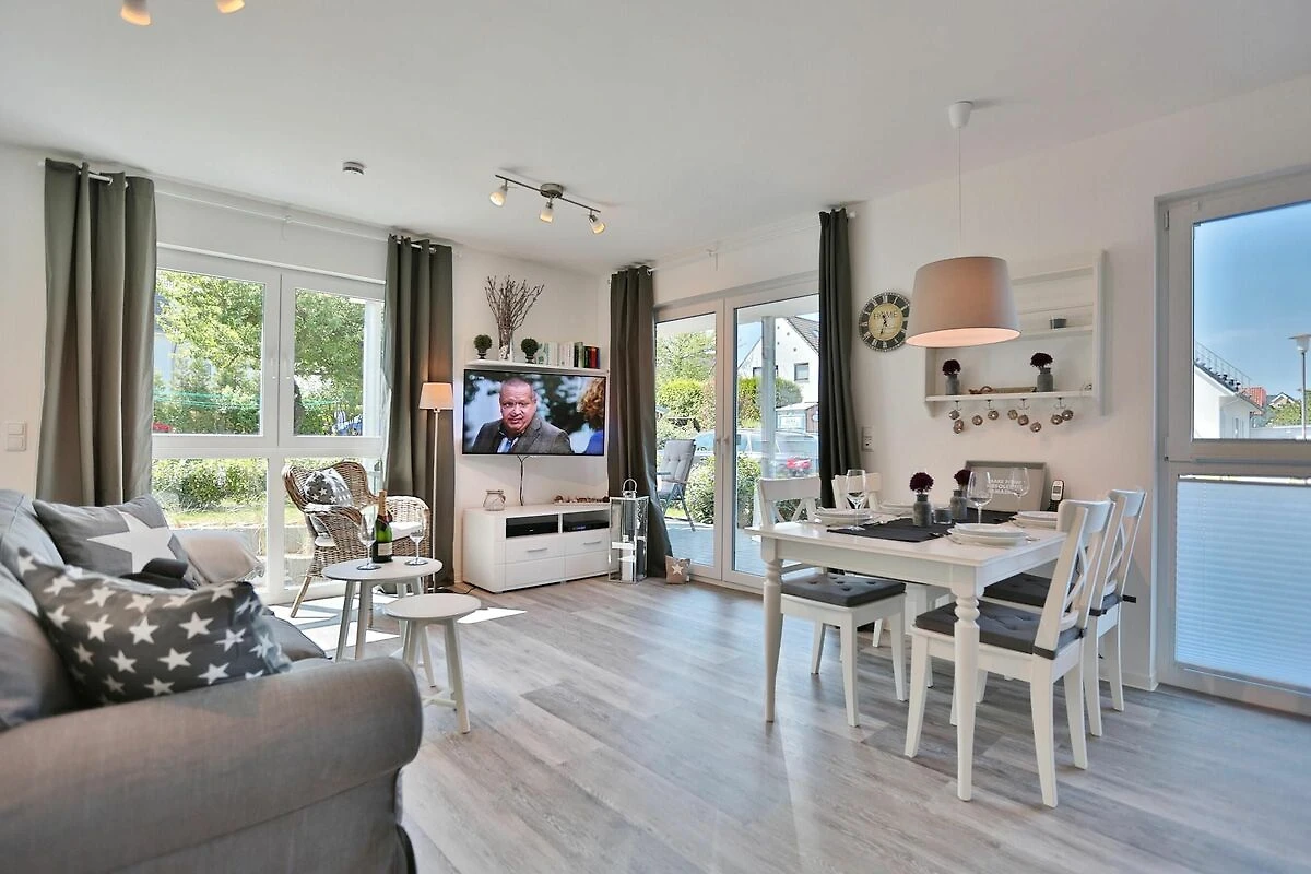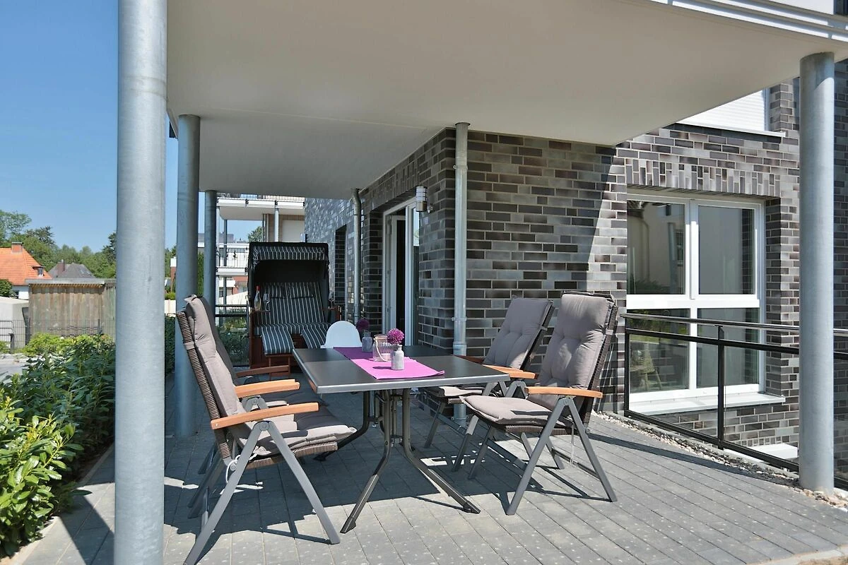 Eine großzügige Raumaufteilung und die sonnige Terrasse bieten Ihnen eine angenehme Atmosphäre um Ihre Ferien zu genießen. Der vorhandene Strandkorb lädt dazu ein, den Abend gemütlich ausklingen zu lassen.