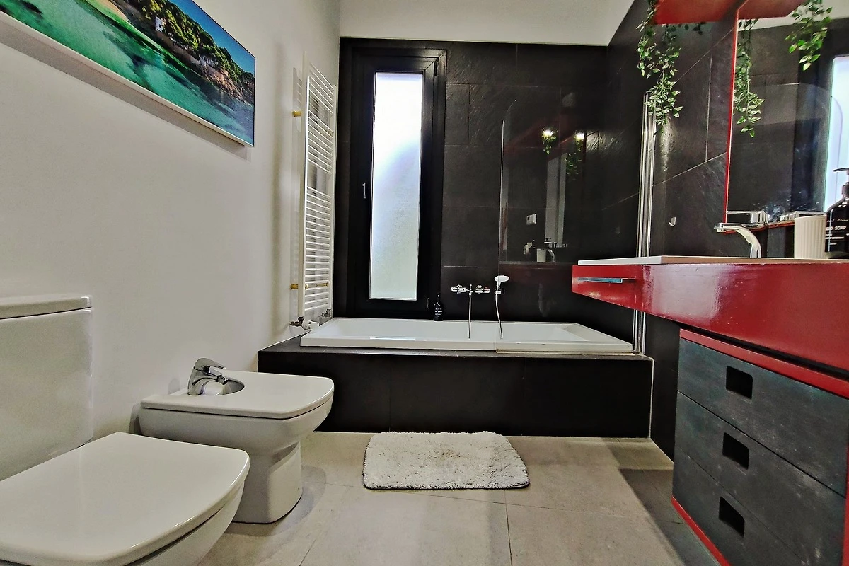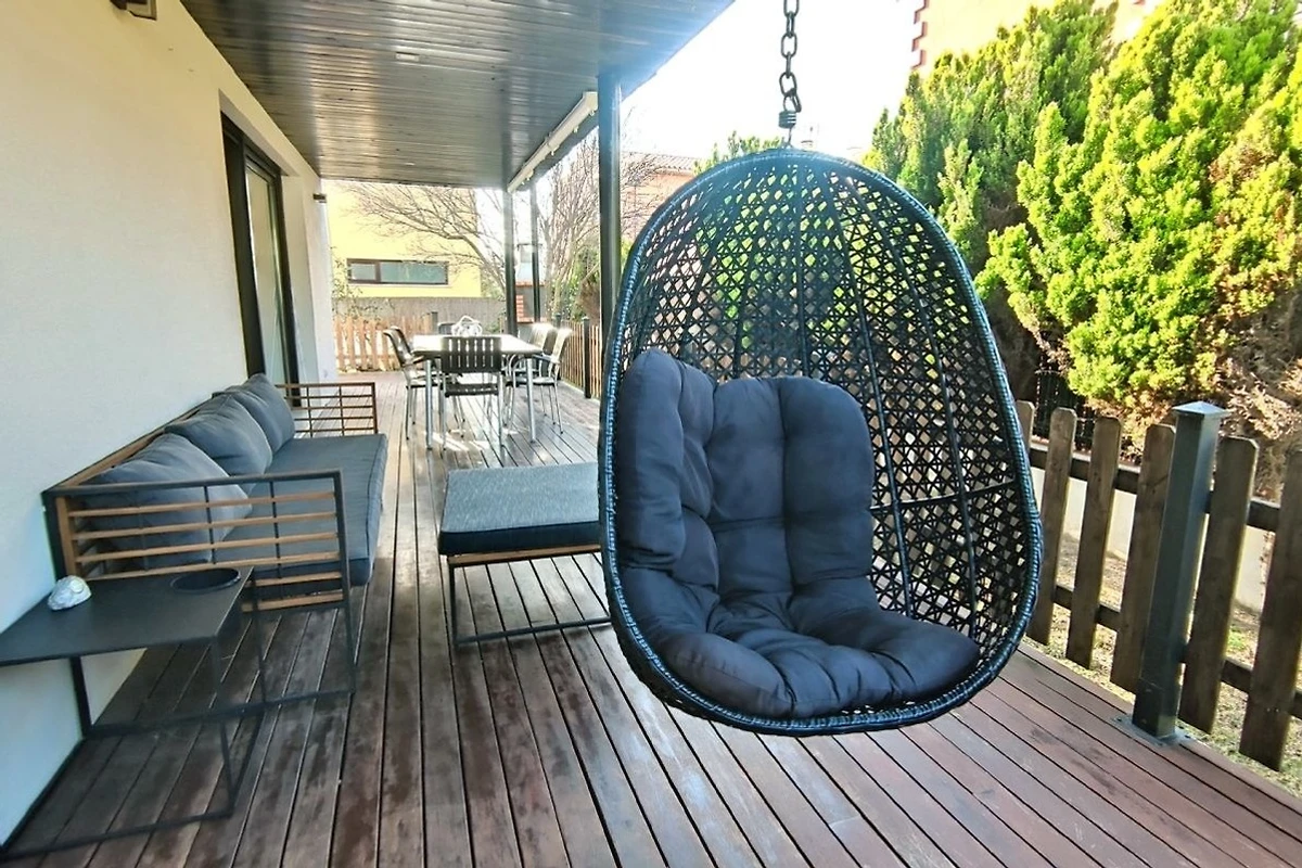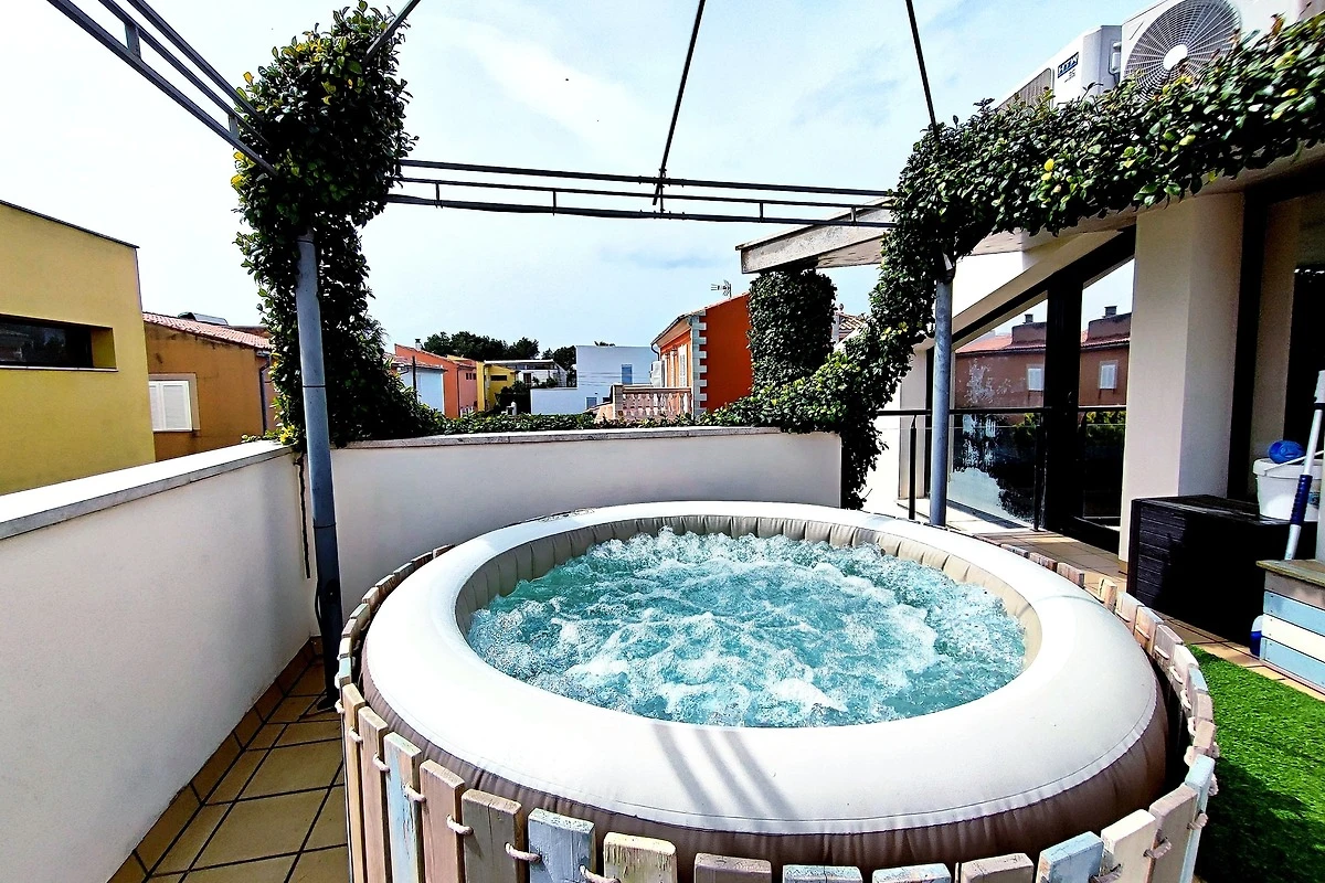 Wunderschöne lichtdurchflutete grosse Villa mit gut 180qm Wohnfläche (3 geräumige Schlafzimmer), eingezäuntem Privatgarten und Pivatpool. Hier finden Sie sonnige und schattige Plätze und einen überdachten Essbereich im Freien mit Sonnensegeln. Auf der Dachterasse wartet ein beheizter Whirlpool und eine beschattete Doppel-Sonnenliege auf Sie!