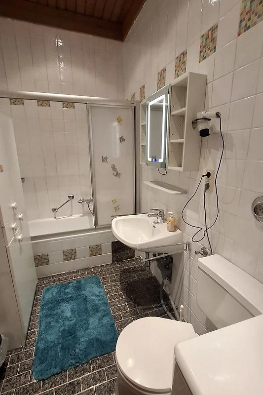 Die Küche ist mit Backofen, Mikrowelle, 4-fach Ceran-Kochfeld, Geschirrspülmaschine, Wasserkocher, Kaffeemaschine, Toaster, Eierkocher und Kühl-Gefrierkombi ausgestattet. Für gemütliche Abende stehen ein Raclette-Ofen und ein Wok bereit. Zur Unterhaltung gibt es im Wohnbereich einen TV mit HD-Sat Empfang, DVD-Player und HiFi-Anlage. Eine Auswahl an DVDs und Büchern steht ebenfalls bereit. In der gesamten Wohnung gibt es für unsere Gäste kostenloses WLAN (max. 150 MBit/s).