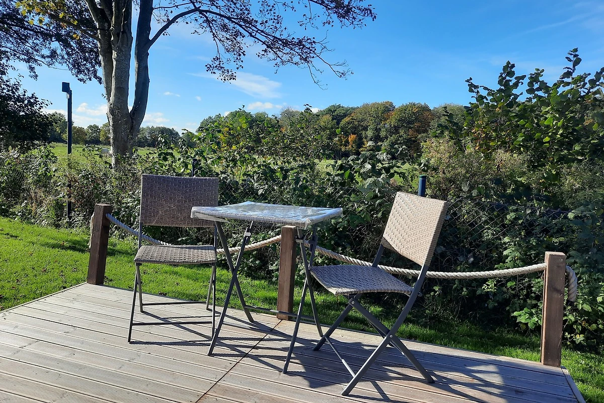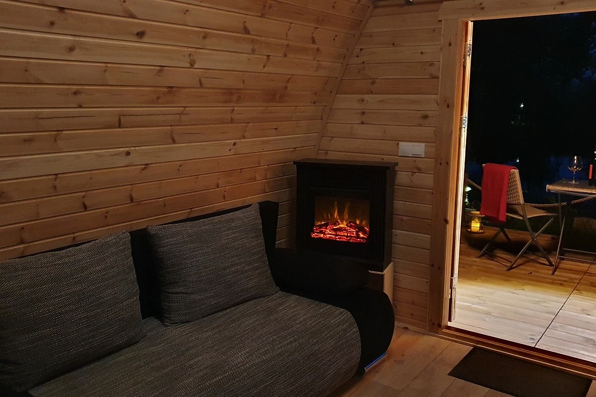 Der Pod ist mit einem eigenen Duschbad inkl. WC und Waschbecken, einem bequemen Doppelbett, einem Sofa was auch gleichzeitig eine weitere Schlafmöglichkeit sein kann, einem Esstisch mit zwei Stühlen, Ablageflächen, einem LCD Flachbildfernseher, Geschirr, Besteck, Wasserkocher und einen Kühlschrank mit kleinem Gefrierfach ausgestattet. Egal ob Frühling, Sommer, Herbst oder Winter, der Pod steht für Sie immer zur Verfügung. Durch eine elektrische Heizung mit Kaminfeuereffekt, sind auch die kalten Tage gemütlich warm zu verbringen. Auf der Terrasse, ausgestattet mit Stühlen, einem Tisch und einem angrenzenden Strandkorb (saisonal) können Sie Ihr schönes Frühstück mit Blick aufs Freie oder Abends bei Sternenhimmel einfach geniessen.