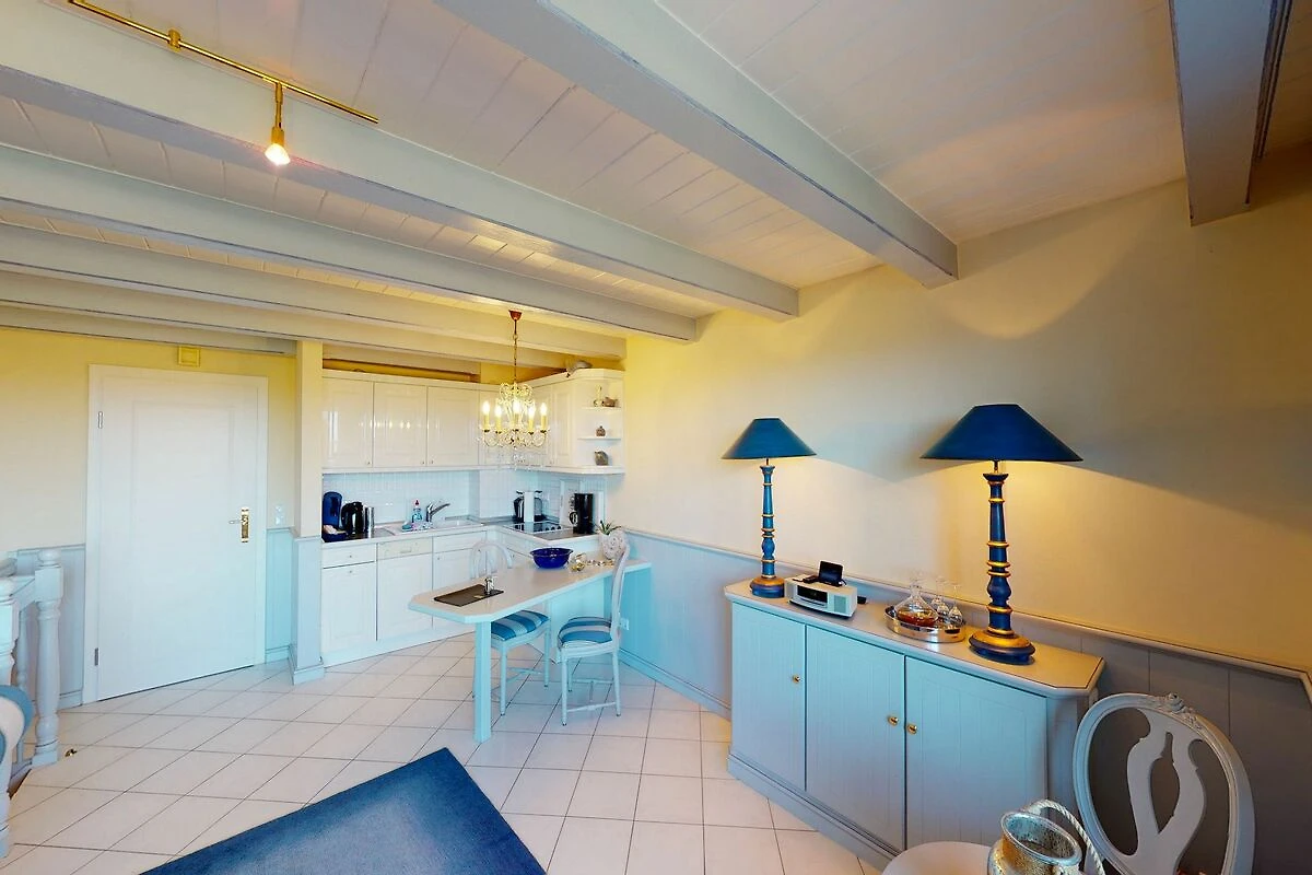 Willkommen in der maritimen Ferienoase "Waterkant" in Morsum, wo Ruhe und Erholung zuhause sind. Auf zwei Etagen erstreckt sich dieses charmante 54qm Apartment, perfekt für bis zu drei Personen geeignet und direkt an den Salzwiesen gelegen, nur einen Steinwurf entfernt vom imposanten Roten Kliff von Morsum.
