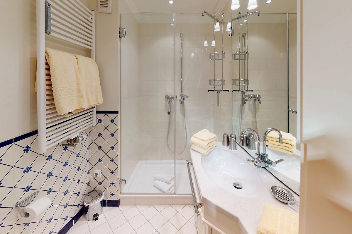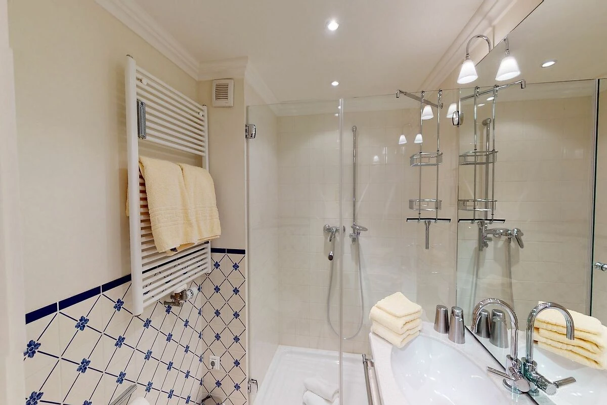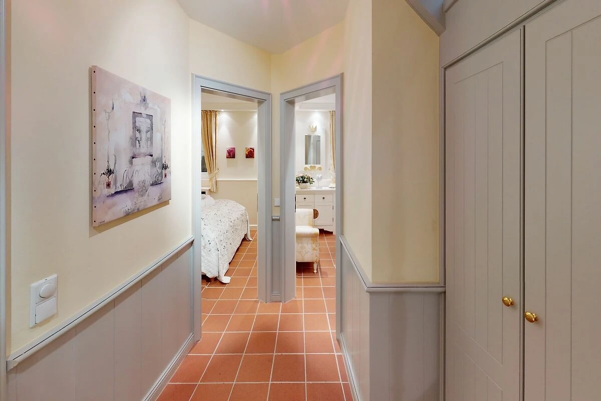 Im Untergeschoss finden Sie ein Schlafbereich mit einem komfortablen Doppelbett und Einbauschränken sowie ein weiteres Schlafzimmer mit einem Einzelbett und ebenfalls Einbauschränken um neue Energie für den nächsten Urlaubstag zu tanken. Ein großzügiges Badezimmer mit einer Dusche komplettiert dieses Stockwerk.
