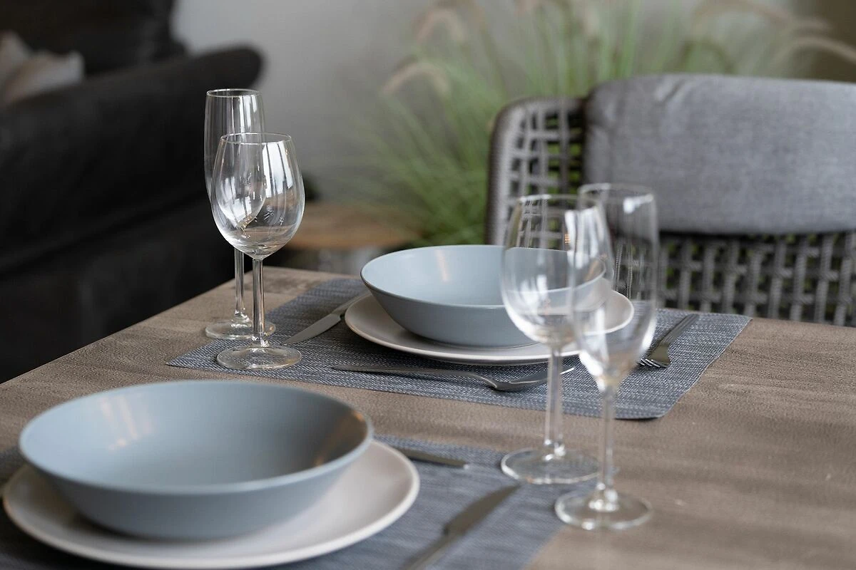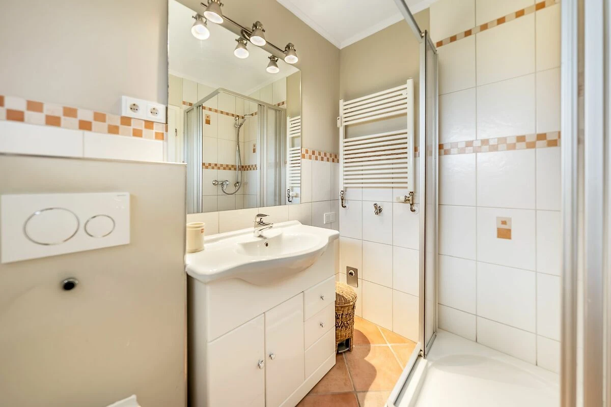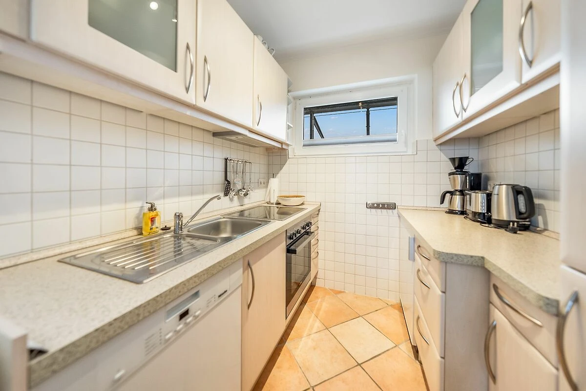 Dusche und einer Handtuchheizung. Auch die voll ausgestattete Küche ist hell und freundlich gestaltet und bietet alles für einen entspannten Urlaub mit der ganzen Familie.
