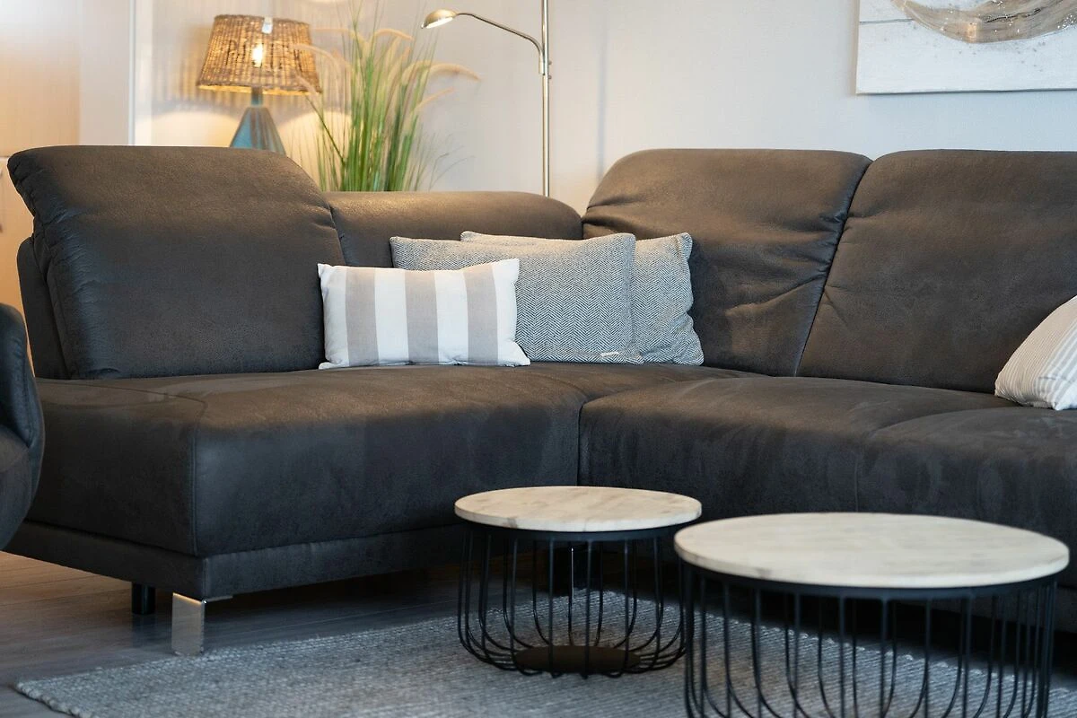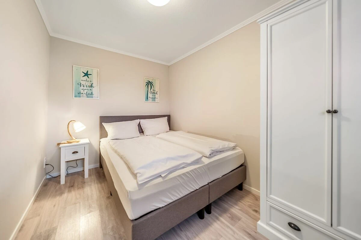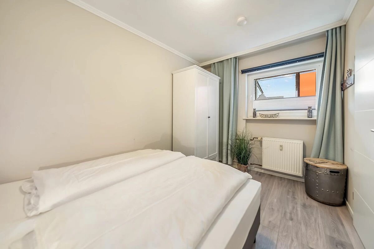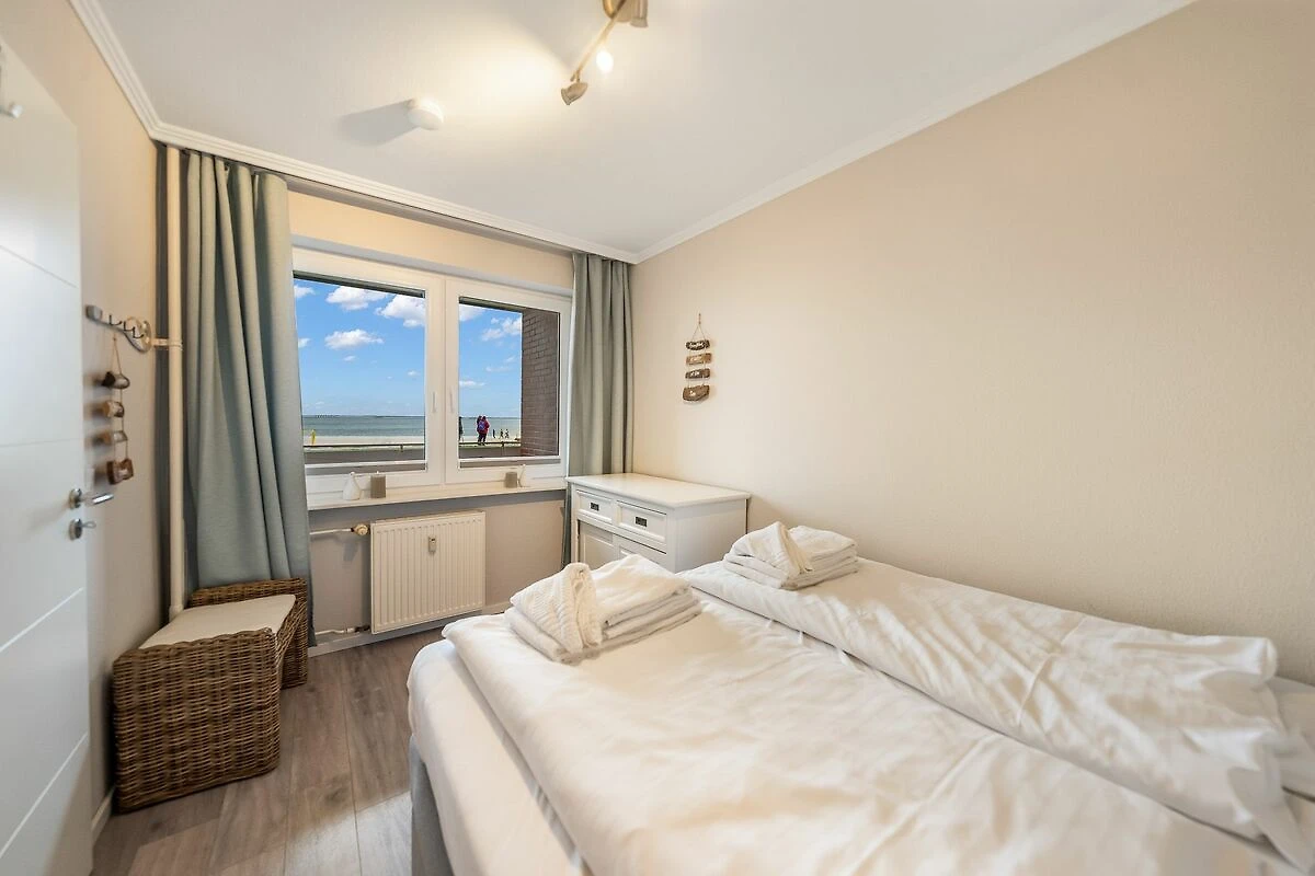 Die moderne Ferienwohnung „Strand und Meer“ ist etwas für Inselliebhaber, die einen fantastischen Ausblick auf das Meer suchen. Der hell gestaltete Wohnbereich verfügt über eine gemütliche Sitzgelegenheit, TV sowie einem Essbereich von wo aus Sie freie Sicht auf die Hörnumer Promenade haben. Vom Wohnbereich gelangen Sie direkt zum angrenzenden Balkon. Das Hauptschlafzimmer der 70qm großen Wohnung verfügt über ein gemütliches Doppelbett sowie einem Kleiderschrank.