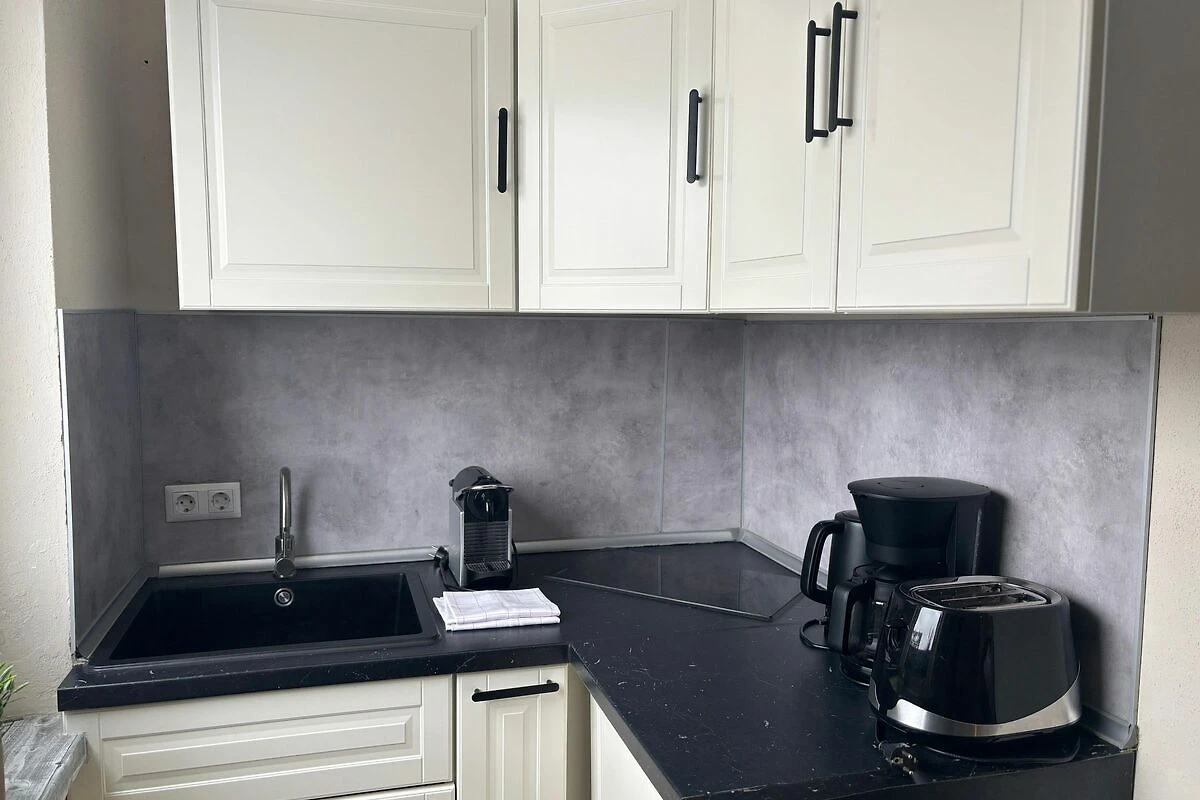 Die gut ausgestattete Küche mit kleiner Essecke befindet sich in einem