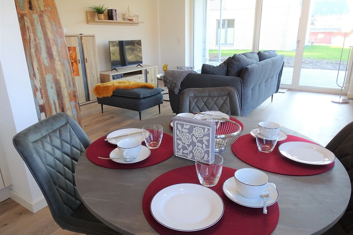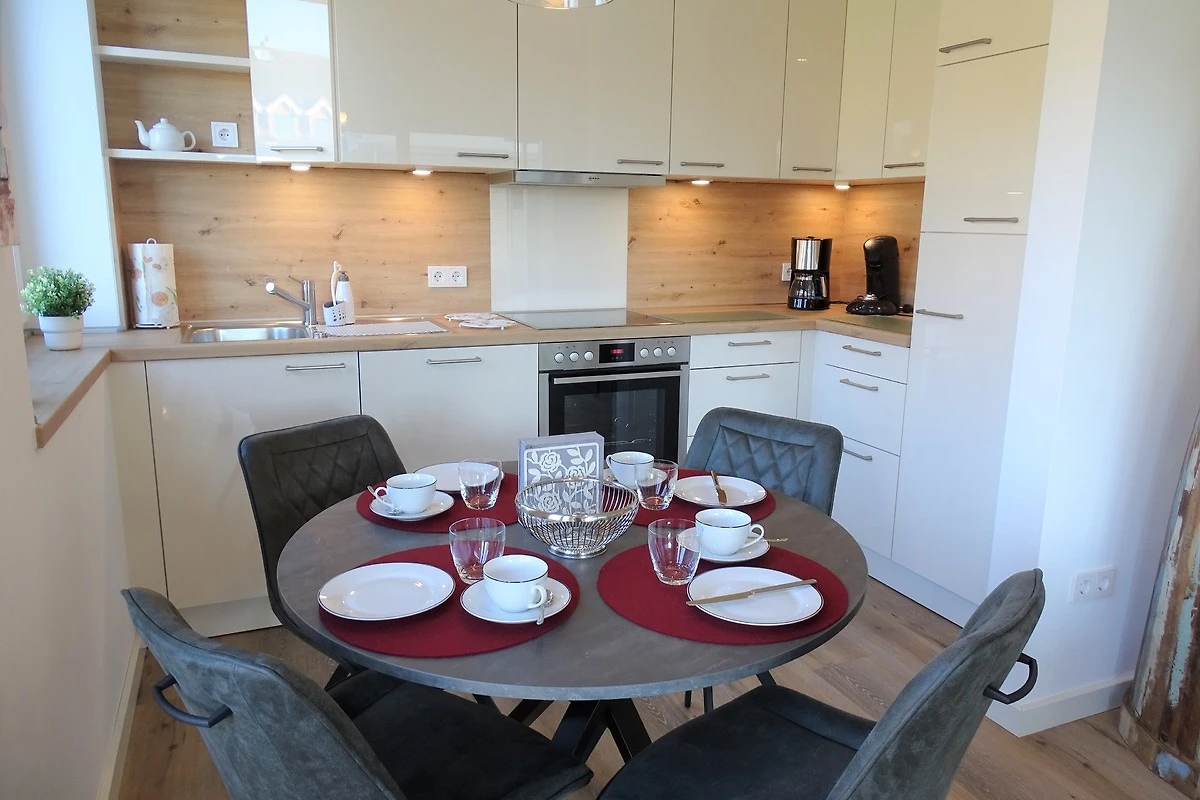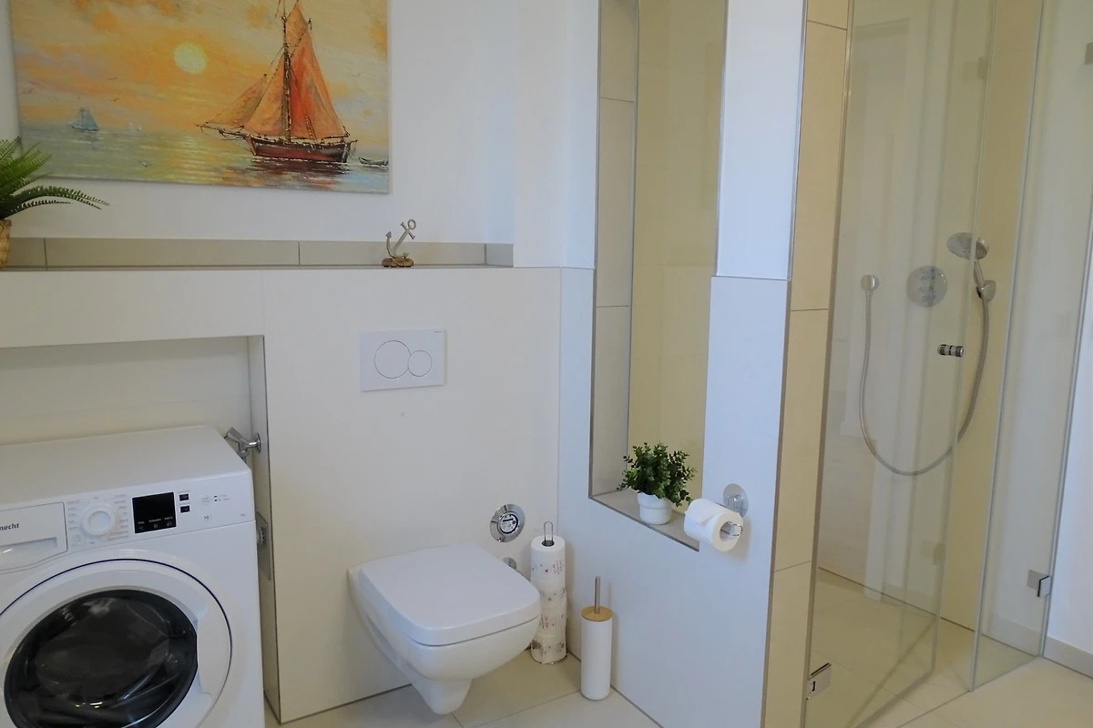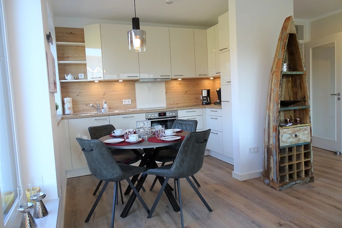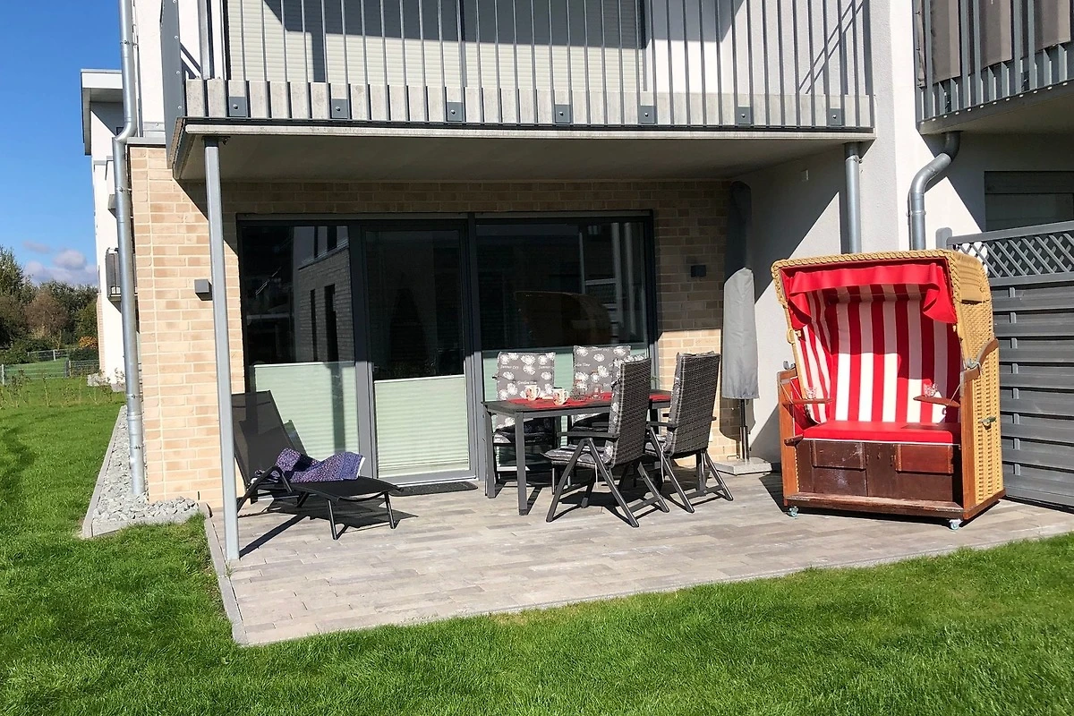 Der Ausstattungsplan ihres Feriendomizils ist dem Grundriss entsprechend durchdacht, dass Inventar ist entsprechend sehr geschmackvoll und liebevoll ausgewählt. Neben 2 separaten Schlafräumen mit Boxspringbetten, einem modern-gemütlichen und offenem Wohnbereich mit kompletter Einbauküche, einem hell und freundlich gestaltetem Badezimmer mit ebenerdiger Dusche, erwartet Sie eine nach "Süden" ausgerichtete sonnige Terrasse mit Gartenmöbeln. In einem Original Ostseestrandkorb zum Relaxen, können Sie die Abendsonne bis spät in den Abend geniessen. Das Ferienobjekt ist für maximal 4 Erwachsene und 1 Kleinstkind im Alter bis zu 3 Jahren ausgelegt. Haustiere sind hier leider nicht gestattet. Sämtliche Räume verfügen über Plissees zur Abschattung und Aussenrollos für die Verdunkelung. Bettwäsche und Handtücher, sowie Kinderreisebett und Kinderhochstuhl können Sie beim Vermittlungsbüro Wandelt für den Urlaubsaufenthalt bequem anmieten...Ein zugewiesener Kfz - Stellplatz befindet sich direkt am Objekt, ein weiterer Kfz-Stellplatz kann bei Bedarf gegen eine Gebühr angemietet werden. Für E-Fahrzeuge ist eine öffentlich nutzbare E-Ladestation in ca. 20 m Entfernung vom Objekt verfügbar. Für Internet Freaks ist eine direkte Verbindung vom Hausanschluss in das weltweite Netz mit Glasfaser vorhanden.