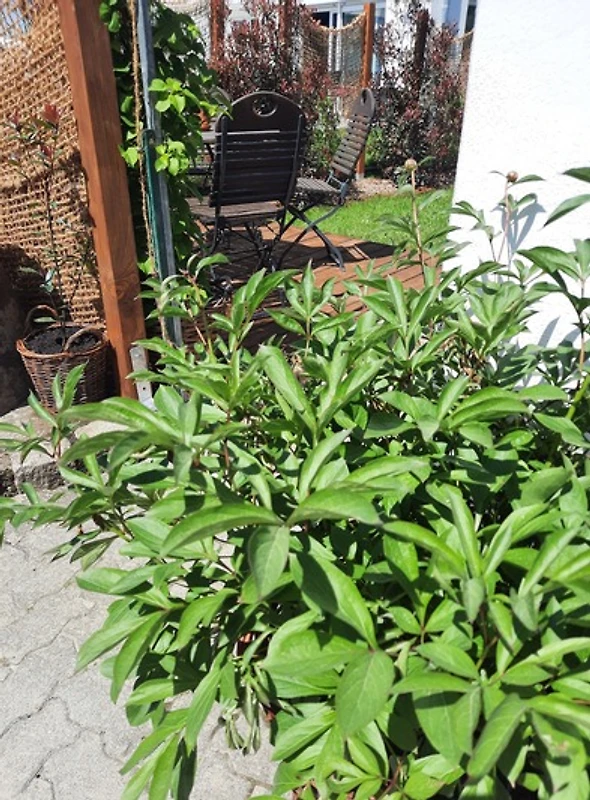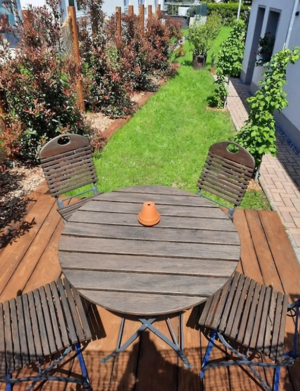 An kleiner, gmiatlicher Garten mit ner Holzterrasse und Gartenliegen steht au zur Verfügung.