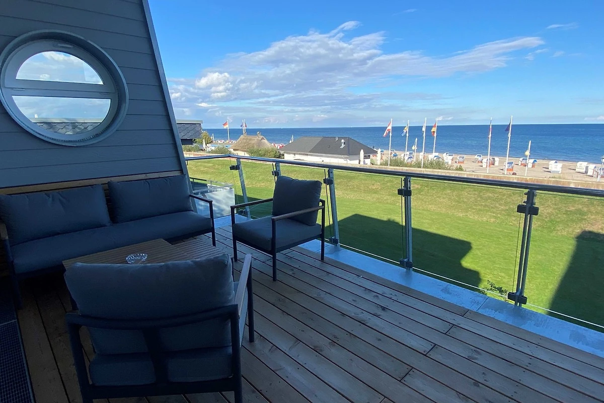 Die Ferienwohnung Panorama-Deck ist eine Maisonette Wohnung mit ca. 110 m² Wohnfläche und 20 m² Dachterrasse direkt hinter dem Deich und nur wenige Gehminuten von der Dahmer Strandpromenade, den wunderschönen Sandstrand und natürlich der Ostsee entfernt. Die Wohnung bietet Ihnen eine luxuriöse Ausstattung und direkten Blick auf die Ostsee – vom hell eingerichteten Wohnbereich mit grosszügigem Essplatz und offen gestalteter Küche im zweiten Stock und einem der Schlafzimmer sowie der Wellnessoase mit Badewanne im ersten Stock.