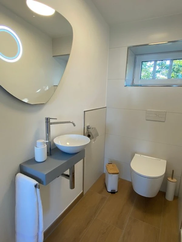 Im EG des Bootshauses befinden sich 4 Garagenstellplätze, die gegen Aufpreis hinzugebucht werden können, ansonsten weisen wir Ihnen einen Parkplatz direkt am Haus zu.