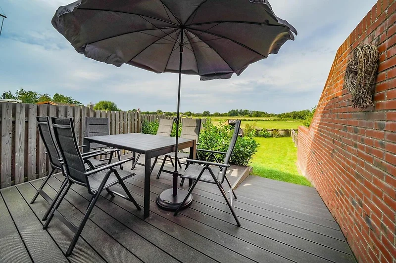 Die Natur und Borkum Wiesen sind direkt hinter der Terrasse.
