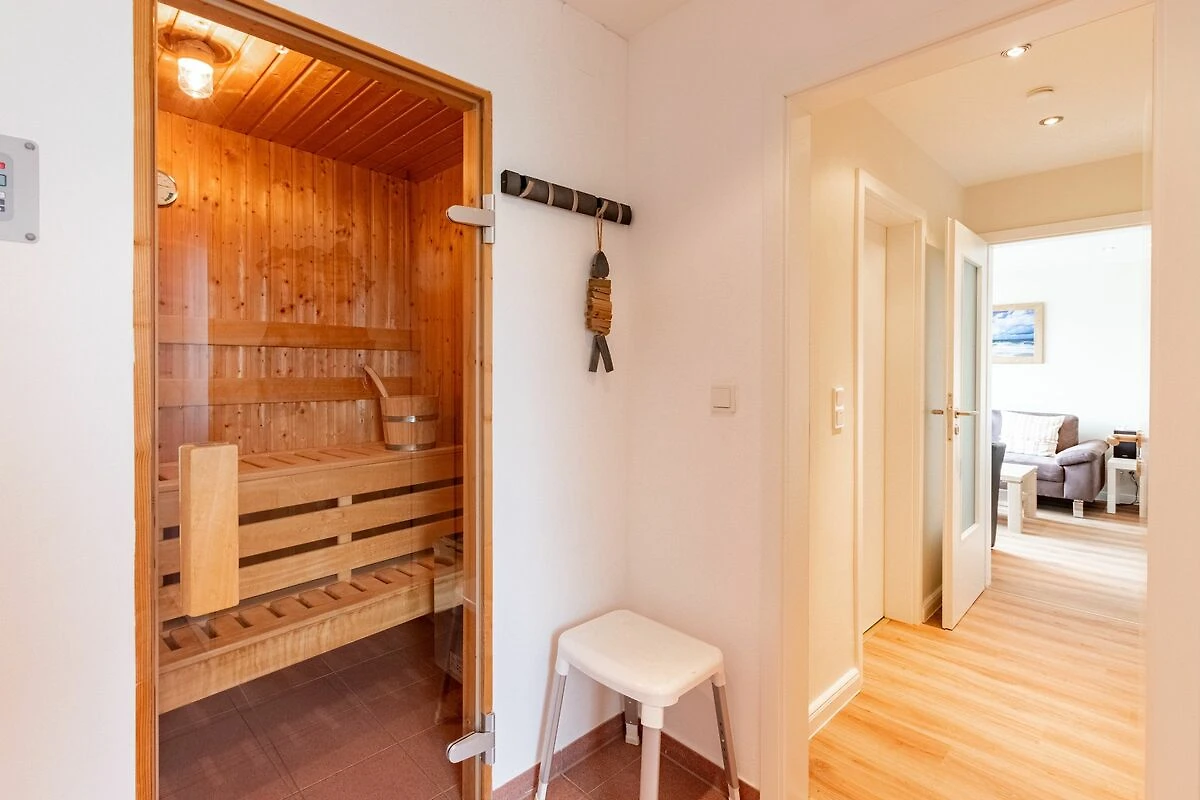 Im Erdgeschoss des Hauses finden Sie den großzügigen Wohnbereich mit bequemer Sitzgruppe, Flat TV und Elektro Kamin. Zusätzlich ist in dem separaten Wohn- Schlafbereich ein Doppelbett mit Kleiderschrank vorhanden. Auf der angrenzenden Südterrasse mit Gartenmöbel läßt es sich gemütlich bis in die Abendstunden hinein relaxen. Weiterhin befindet sich im Erdgeschoss eine gut ausgestattete Küche, ein Esszimmer, Badezimmer sowie einer Sauna.