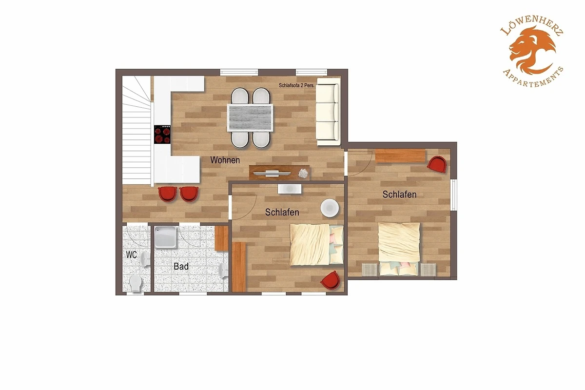 Wohnen und Essen: Der Wohn-und Esszimmerbereich verfügt über moderne und gemütliche Sitzelemente um in gemeinsamer Runde zu Essen, Spiele-Abende zu geniessen oder einfach nur gesellig beisammen zu sein. Alternativ bietet die moderne, freistehende Küche einen Barbereich um zu zweit einen gemütlichen Kaffee oder Sekt zu geniessen. Das Sofa lässt sich zum Bett (160x200cm) für 2 Personen umfunktionieren. Ein Smart-TV mit Netflix-Zugang für entspannende Abende lässt keine Wünsche offen.