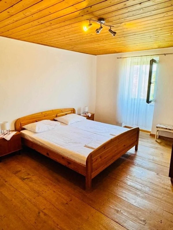 Haus ist mit zwei Etagen. Im Obergeschoss sind zwei grosse, schöne Schlafzimmer, jedes mit Doppelbett und ein Einzelbett. Unten befindet sich eine voll ausgestattete Küche mit Wohnbereich und Standortwahl statt conected. Hier ist auch ein Bad mit Dusche. Küche und Wohnzimmer ist im rustikalen Stil mit dicken Mauern etwa einen Meter, die Temperatur sehr angeneh m zu halten dekoriert. In der vor dem Haus gibt es grosse Terasse mit Meerblick, Tisch und Stühlen unter natürlichen Schatten. Dieses Haus ist ein Teil des grossen Grundstück, umgeben von Olivenbäumen und anderen Bäumen. Der Stein- und Betonstrand ist nur 300 Meter vom Haus entfernt. Und der erste Sandstrand liegt zwei Kilometer entfernt. In fünf Kilometern erreichen Sie die Altstadt von Rab. Ein Einkaufsmarkt und eine Bäckerei sind nur 200 Meter entfernt.