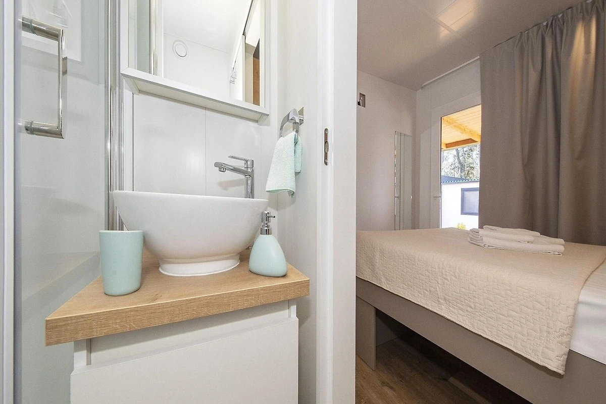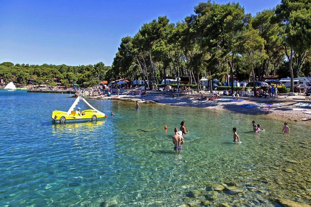 Direkt am flach abfallendenden Sand- und Kiesstrand begrüßt Sie der Caravanpark Soline mit seinen 250 Mobile Homes. Je nach Lage sind diese zwischen 40 m und bis zu 400 m vom Strand entfernt und befinden sich im Schatten eines dichten Kiefernwaldes. Ihr Auto können Sie direkt an Ihrem Mobile Home parken und auf der überdachten Terrasse den Tag ausklingen lassen. Zusätzlicher Parkplatz kostet EUR 10,00 je Tag.