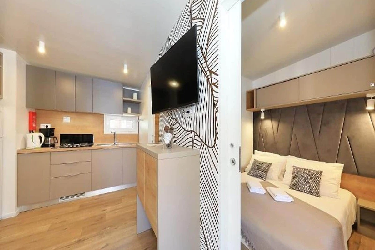 Toller Ort für einen Sommerurlaub! Der Strand war perfekt für Kinder, mit flachem Wasser und weichem Sand, Unser Mobilheim war sauber und komfortabel, und wir genossen das Essen auf der Terrasse, Die Nähe zu Biograd na Moru machte es einfach, lokale Attraktionen zu erkunden