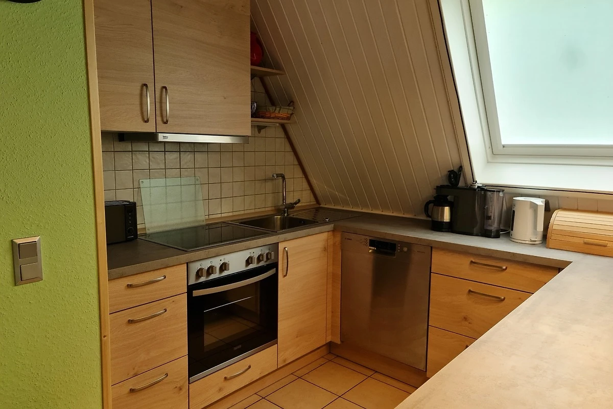 Das Ferienhaus wurde in 2021 renoviert. Im Erdgeschoss befindet sich ein Schlafzimmer mit einem Doppelbett und einem Bad mit Badewanne. Zu dem Wohn-/Essbereich gehört unter anderem die offene Küche mit Küchenzeile (ausgestattet mit Senseo-Switch Kaffeemaschine, Geschirrspüler, Toaster etc.). An dem Esstisch finden bis zu 6 Personen ihren Platz, ebenso ist ein Kinderhochstuhl vorhanden. Vom Wohnzimmer, ausgestattet mit Smart-TV , gelangt man auf die grosse Terrasse. WLAN steht den Feriengästen kostenfrei zur Verfügung.