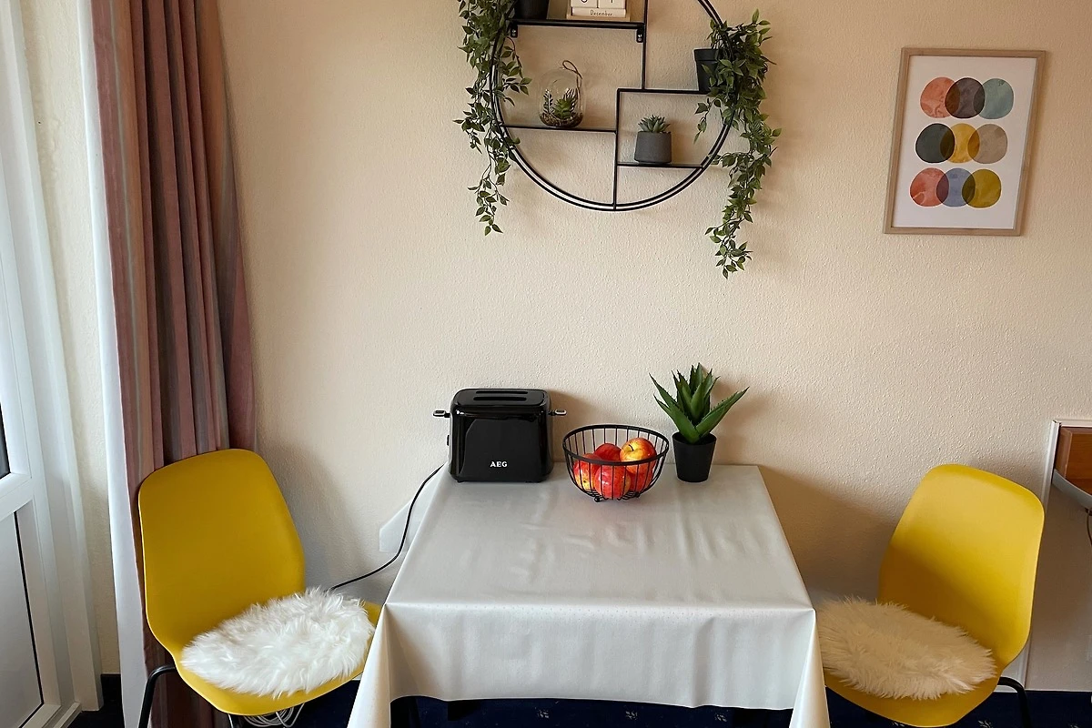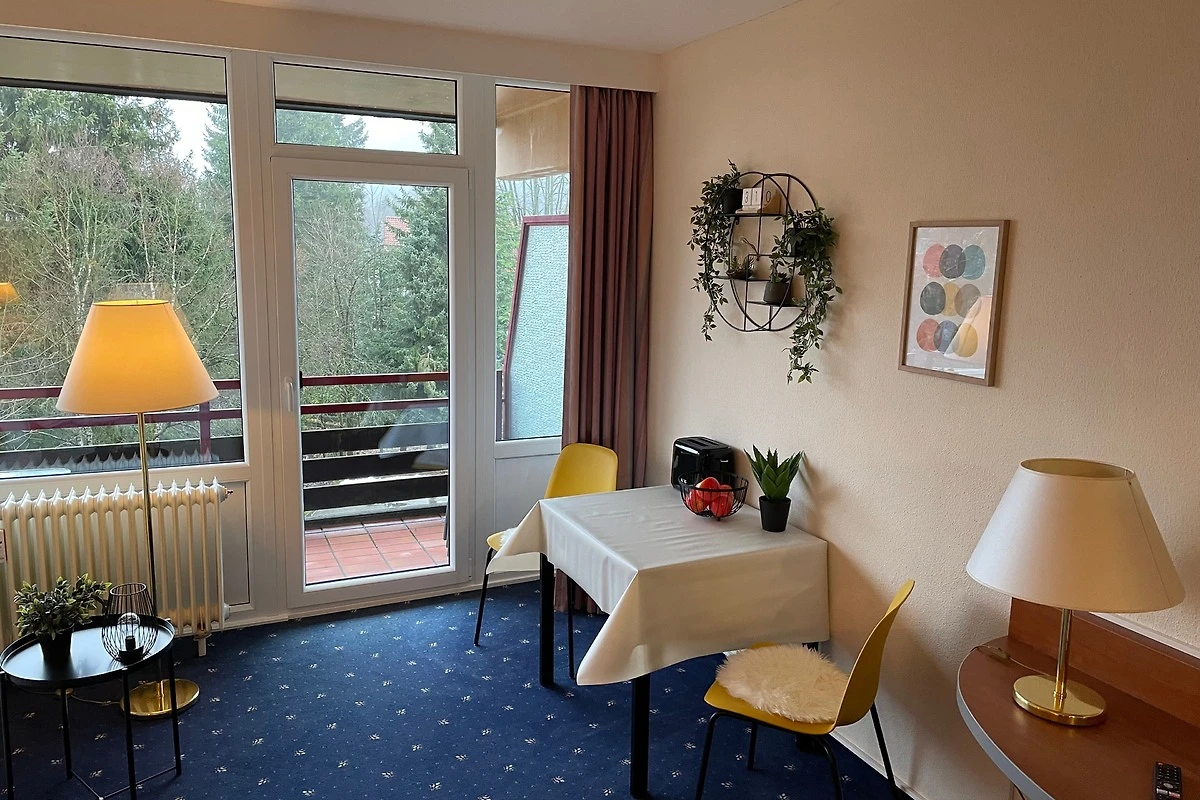 Fewo -Bergluft-, zentrale Lage (Zentrum 100m, Lift 150m), 2 Gäste, Doppelbett, Badezimmer mit Dusche, Balkon mit Sommermöbel, Küchenzeile mit Grundausstattung, Kochplatten, Kühlschrank mit Gefrierfach, Kaffeemaschine, Wasserkocher, Toaster, Mikrowelle, TV, Haartrockner, Esstisch und Stühle, kostenloser Parkplatz, Sauna und Schwimmbad ( z.Zt. geschlossen wegen Renovierung),Handtücher, Bettwäsche, Haustiere erlaubt (mit Mehrpreis). Objektbetreuung vor Ort, Geschirrspülen und Müllentsorgung gehört nicht zur Endreinigung und muss vom Gast erledigt werden. Mülltrennung ist erforderlich. Aufzug vorhanden