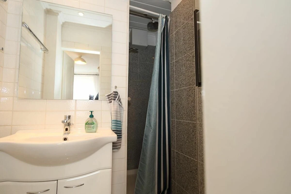 Am Eingang befindet sich eine Garderobe. Von hier aus kommen Sie in das moderne Duschbad.
