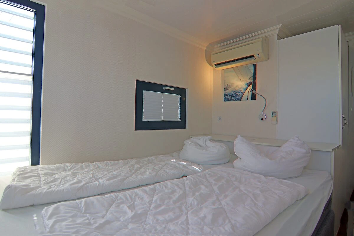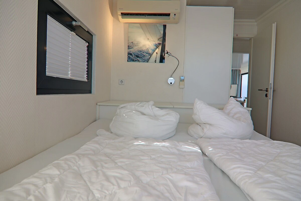Genieße Sie Ihren Urlaub auf einem Hausboot mit der ganzen Familie oder entschleunigen Sie mit guten Freunden – weit weg von Stress und Alltag. Dieses einladende Hausboot (führerscheinfrei) ist ein schwimmendes Ferienhaus und hat seinen festen, stationären Liegeplatz auf der Ostsee in der Marina Boltenhagen in der Weißen Wiek. Hier macht man gern Urlaub, wenn man das Meer und den Strand liebt. Man kann sich auf dem Wasser aufhalten und ist trotzdem nahe dem Festland. Urlaub auf einem Hausboot bedeutet vor allem, direkt und im Einklang mit der Natur zu sein. Bei schönem Wetter genießt man die Sonne auf der gemütlichen Terrasse oder dem eigenen Sonnendeck. An kühleren Tagen bietet das klimatisierte und komfortabel ausgestattete Hausboot mit seinen 3 Innenräumen ausreichend Rückzugsmöglichkeiten für alle Gäste. Es gibt ein Badezimmer mit separaten WC. Zudem sorgt die Heizung auch an kalten Tagen für eine gemütliche Stimmung an Bord. Die Glasfassaden im Wohn- und Essbereich durchfluten die Innenräume mit ausreichend Tageslicht verstärken das Gefühl von Freiheit und Nähe zur Natur, können bei Bedarf aber jederzeit verschattet werden.