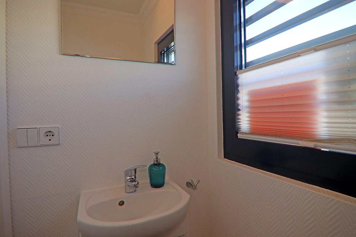 Parterre: (offene Küche(Kochplatte(2 Kochplatten, Ceranfeld), Wasserkocher, Toaster, Kaffeemaschine, Mikrowelle, Spülmaschine, Kühlschrank), Wohn/Esszimmer(TV(Flatscreen, Satellit), Esstisch, Sitzecke, Radio), Schlafzimmer(Doppelbett), Schlafzimmer(Doppelbett), Badezimmer(Dusche, Waschbecken), Toilette(Waschbecken, Toilette))