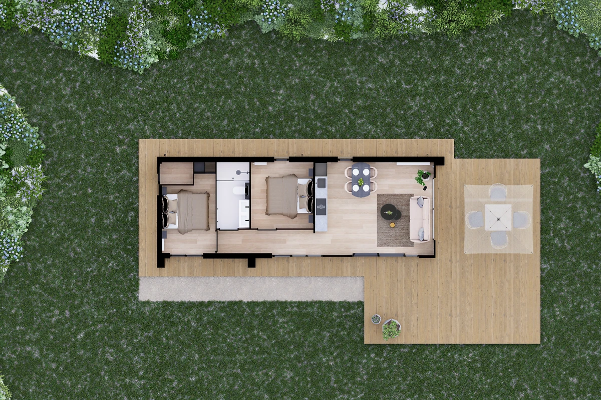 Alle unsere Villen haben zwei Schlafzimmer, beide mit 2 Einzel-Boxspringbetten und einem Flachbildfernseher in jedem Zimmer. Beide Schlafzimmer bieten reichlich Stauraum. Bei Ihrer Ankunft haben wir die Betten für Sie gemacht. Das luxuriöse, grosse Badezimmer hat ein Doppelwaschbecken, eine Regendusche und eine Toilette. Vom Wohnzimmer aus haben Sie Zugang zu der schön angelegten Hartholzterrasse und dem angrenzenden Rasen. Hier finden Sie einen bequemen Esstisch für 4 Personen und einen Sonnenschirm. Und wenn Sie ein eigenes Boot haben, können Sie bequem zum Hafen laufen und direkt auf den Niederrhein fahren. Unsere Villen sind Nichtraucherhäuser, ausgestattet mit WLAN und Abstellraum. Sie können ein Auto problemlos an der Unterkunft parken.