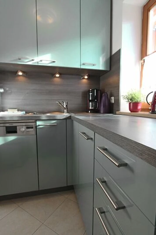 Ihre Kochkünste dürfen Sie gerne in der modernen Küche unter Beweis stellen. Sie ist vollständig eingerichtet und es wird Ihnen hier an nichts fehlen! Ein Fenster sorgt für ausreichend Tageslicht und den nötigen Durchblick am Herd.