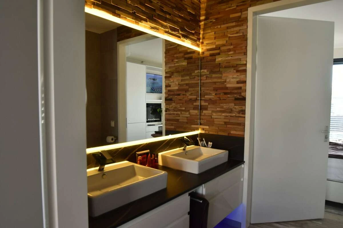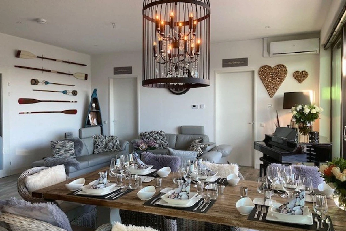 Willkommen in diesem wunderschön eingerichteten Ferienhaus direkt am Wasser in Zeewolde. Die Villa bietet eine einzigartige Mischung aus modernem Komfort und stilvoller Eleganz und verfügt über ein geräumiges Wohnzimmer, dekorative Kamine und luxuriöse Boxspringbetten. Genießen Sie auf der privaten, überdachten Terrasse einen ruhigen Morgenkaffee oder entspannen Sie mit einem Buch im Garten. Mit einem über eine Außentreppe erreichbaren Bootssteg, einem elektrischen Grill, Gesellschaftsspielen und einem Flügel bietet das Haus einen unvergesslichen Rahmen zum Entspannen und geselligen Beisammensein. Umgeben von einer ruhigen Landschaft ist diese Villa ein idealer Ausgangspunkt, um die malerische Region Flevoland zu erkunden. Machen Sie einen gemütlichen Spaziergang zum nur 2 km entfernten Veluwemeer oder genießen Sie die Sommersonne am Flevostrand. Abenteuerlustige können Wassersport treiben oder im Vergnügungspark Walibi Holland einen Adrenalinschub erleben. Familien werden das Dolfinarium in Harderwijk lieben, während Naturliebhaber die wunderschönen Wanderwege der Oostvaardersplassen oder die nahegelegenen Wälder der Veluwe erkunden können. Nach einem Tag voller Entdeckungen können Sie sich mit lokalen Spezialitäten verwöhnen lassen. Das nahegelegene Harderwijk bietet eine Vielzahl charmanter Restaurants, darunter das De Basiliek am Seeufer für gehobene Küche und den Beachclub NU für entspannte Mahlzeiten mit malerischer Aussicht. Für eine abwechslungsreiche Variante besuchen Sie das zauberhafte Pannenkoekenhuis Hans & Grietje, ein familienfreundliches Pfannkuchenrestaurant nur eine kurze Autofahrt entfernt. Ob Sie elegante Küche oder einen kleinen Snack bevorzugen, in der Nähe gibt es für jeden Geschmack etwas.