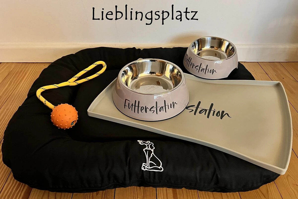 Auf Ihren Hund wartet hier ein Hundekörbchen Gr. M, Fress- und Wassernapf... der Hundestrand ist nur ca. 200 m entfernt.