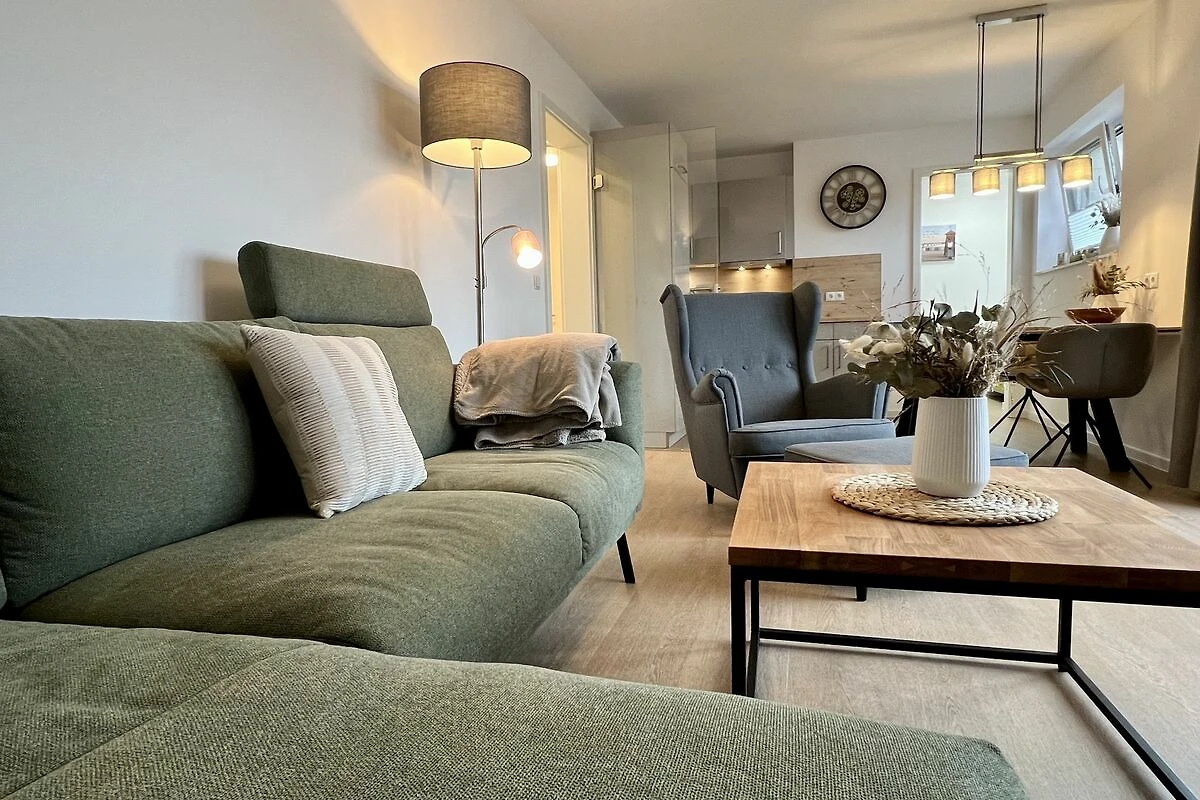 Wir waren rundum zufrieden. Die Ferienwohnungen befinden sich in einer fantastischen Lage, zentral, strandnah und dennoch ruhig gelegen. Unsere Ferienwohnung im 2. Geschoss bot uns sogar Meerblick. Alles ist mehr als gut durchdacht in der Anlage und Wohnung…. vom Schlüsselübergabe bis Mülltrennung zur Abreise ist alles geregelt. Die Wohnung war super sauber und gepflegt, die Ausstattung hervorragend, hochwertig, top modern und ohne Mängel. Es ist für alles gesorgt, bequeme Betten für einen guten Schlaf, umfangreiche Küchen- und Badausstattung, kompletter extra Raum mit sämtlichen Reinigungsutensilien/ Gerätschaften sowie Waschmaschine, Wäscheständer und Klammern. Zusätzlich wird der Gast mit wirklich großer Dach-Terrasse (obersten Wohnungen), großen Balkon (mittlere Wohnungen) bzw. großzügiger Freifläche und Terrasse (Untergeschosswohnungen) überrascht. Diese Wohlfühloasen sind hochwertig und komplett bestückt mit Sitzmöbeln und zum Teil Strandkorb. Einfach super