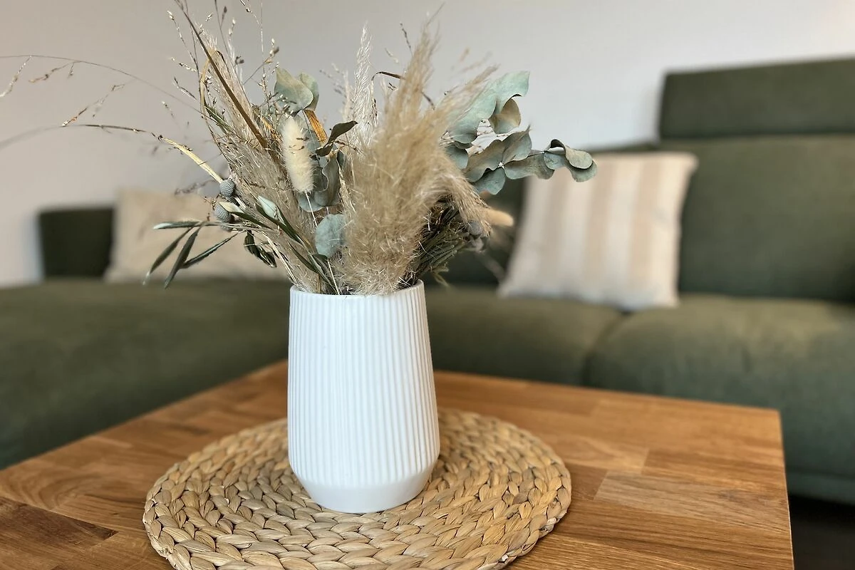 Die Wohnung ist sehr ansprechend eingerichtet. Es hat uns allerdings ein wenig an Ablagemöglichkeiten und Aufhängungen, gerade für Bademäntel, in Höhe gefehlt. Und eine Mikrowelle wurde auch schmerzlich vermisst. Die Menge an Bechertassen ist auch etwas knapp bemessen. Man möchte ja nicht zwingend nach dem Frühstück die Spülmaschine anstellen. Generell kann man in dieser Wohnung aber super gut abschalten, den Blick in der Ferne auf die Ostsee richten und bei kühlen Temperaturen ist die Sauna sehr schön!