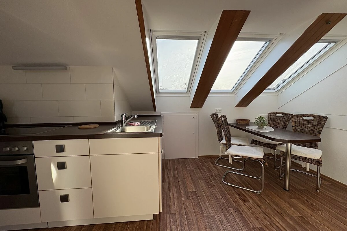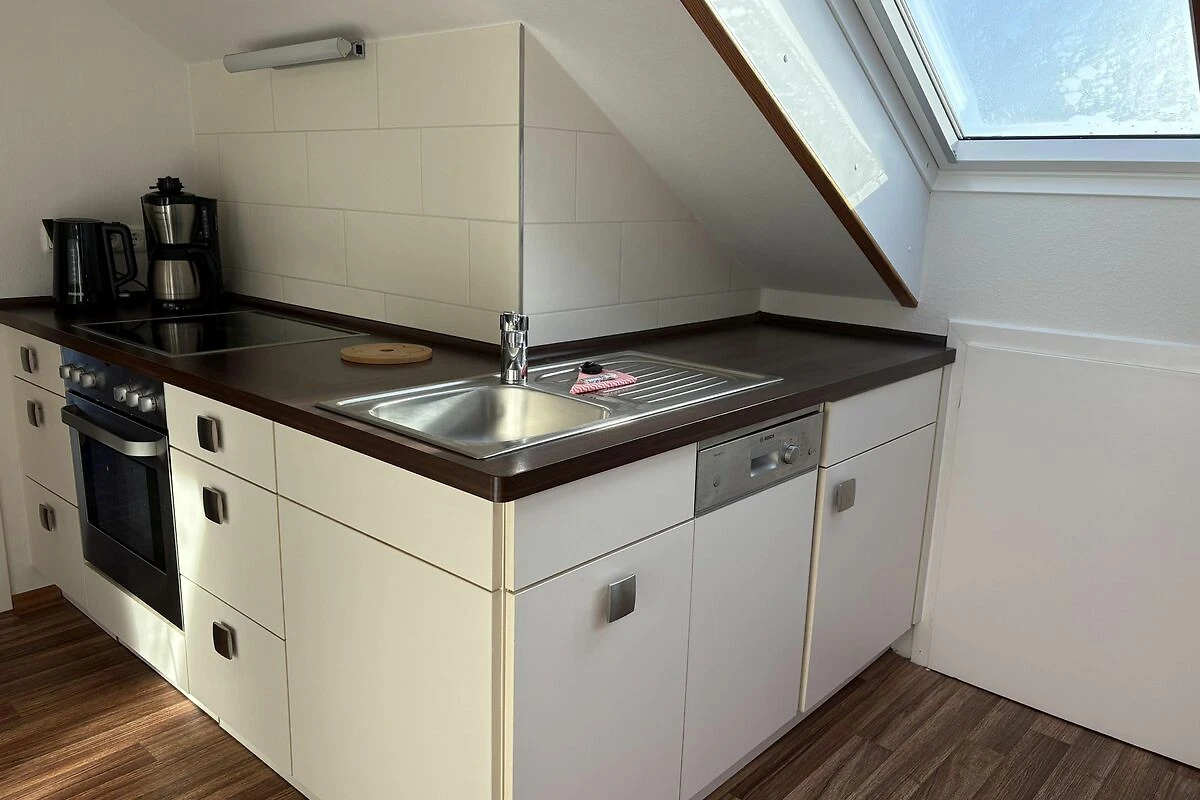 Modern eingerichtete helle Dachgeschoss-Wohnung für zwei Personen in strandnaher Lage, lichte Raumhöhe 2m: