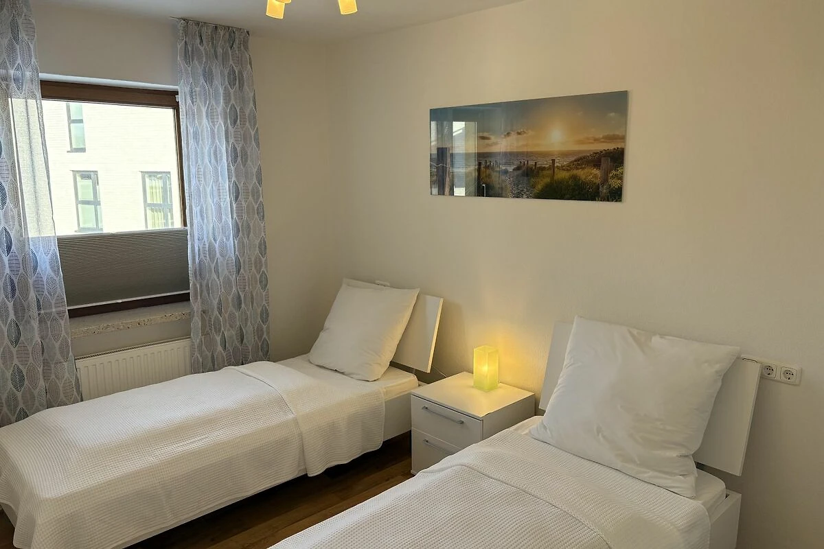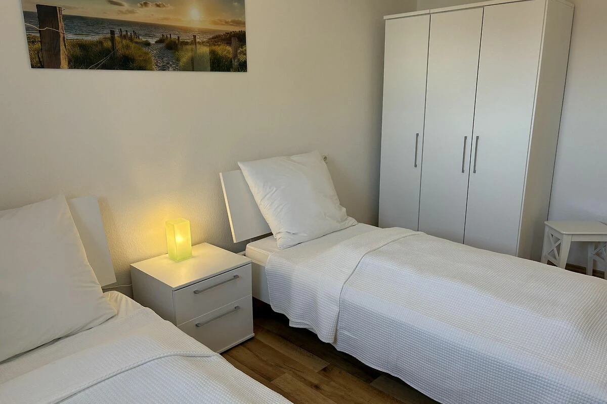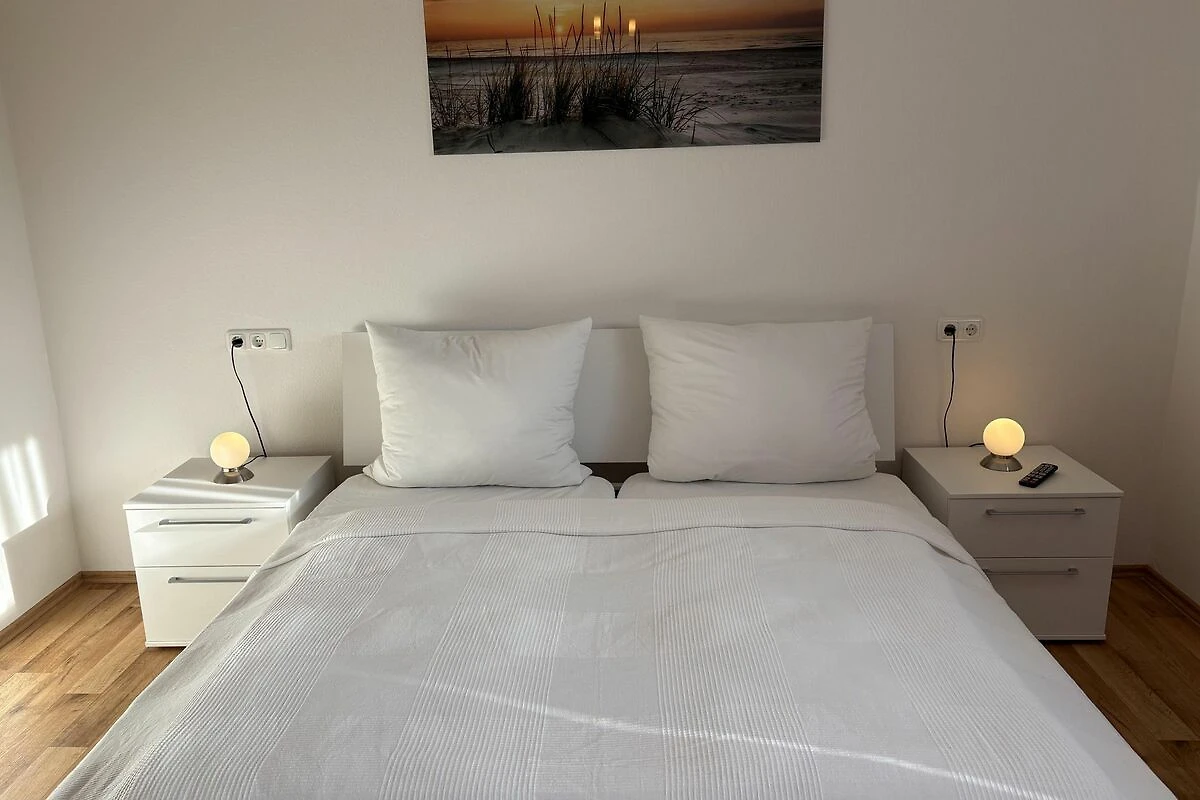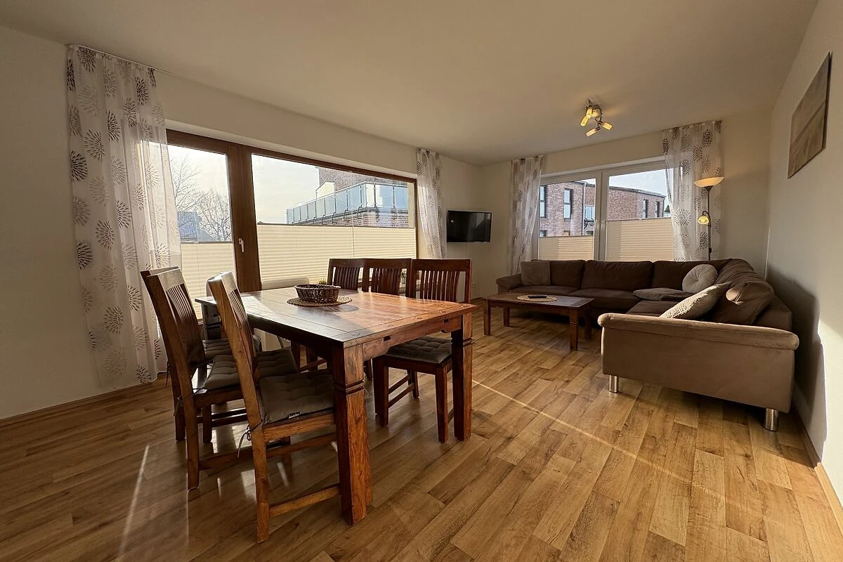 Lichtdurchflutete großzügige klar strukturierte Ferienwohnung im 1. OG in unmittelbarer Strandnähe: