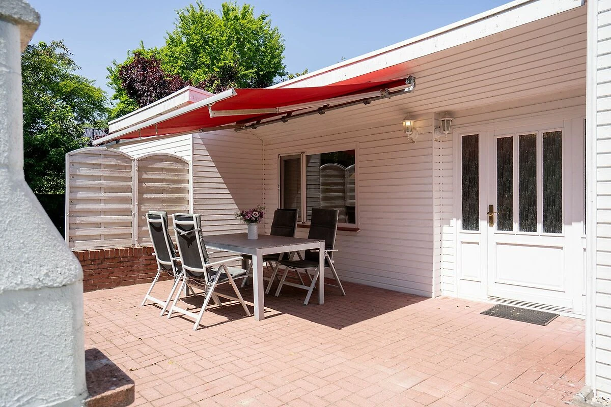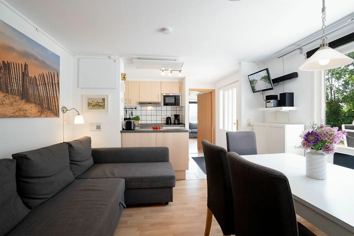 Erlenweg 12, ca. 85 m², möblierte Süd-Terrasse mit Markise, Grundstück mit Wiese, Wohn-Esszimmer mit Essbereich für 4-6 Personen, Schlafsofa, TV, Stereo-Anlage mit CD, Radio, Bluetooth, WLAN, offene Küche mit Backofen, Mikrowelle, Kühlschrank mit Gefrierfach, Geschirrspüler, zwei Schlafzimmer mit Doppelbett und TV, zwei Bäder (Dusche/WC), HWR mit Waschmaschine, zwei Kinderreisebetten mit Matratzen und zwei Hochstühle vorhanden, Kleinkindbadewanne, Kommode mit Wickelaufsatz und -auflage, Holzkohlegrill, Fahrradraum, Carport, ein PKW-Stellplatz zusätzlich, keine Haustiere, Bettwäsche und Handtücher bitte mitbringen oder spätestens zwei Tage vor Anreise gegen Gebühr bestellen.
