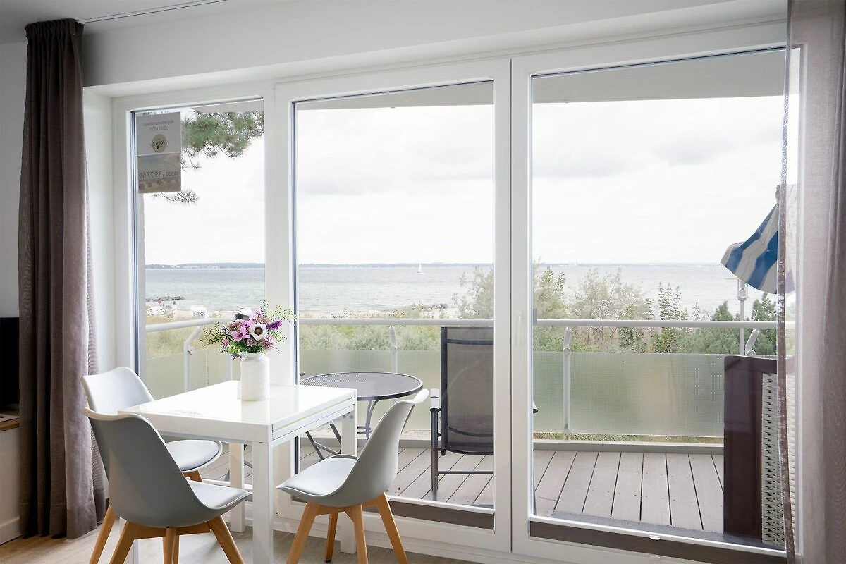das Appartement besticht durch seine 1A Lage direkt an der Promenade mit uneingeschränktem Blick vom Balkon auf die Ostsee/Lübecker Bucht und der Nähe zum Hafen.