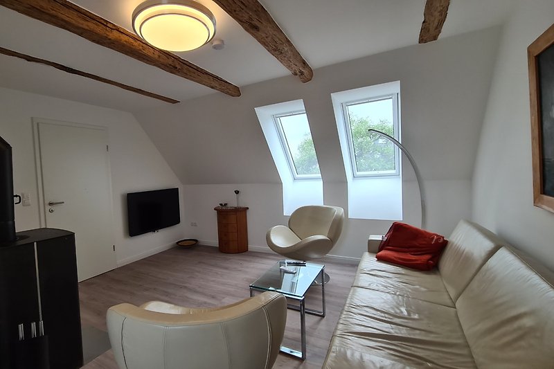 Lassen Sie sich himmlisch verwöhnen in unserer 2023 kernsanierten Maisonette-Wohnung Himmel. Die Wohnung bietet auf 65 qm zwei Schlafzimmer mit insgesamt vier Schlafplätzen (ein Doppelbett (160x200) und ein weiteres Bett (140x200)). Das gemütliche Wohnzimmer lädt mit einem Kaminofen zu romantischen Stunden ein, während die moderne Fußbodenheizung für angenehme Wärme sorgt.