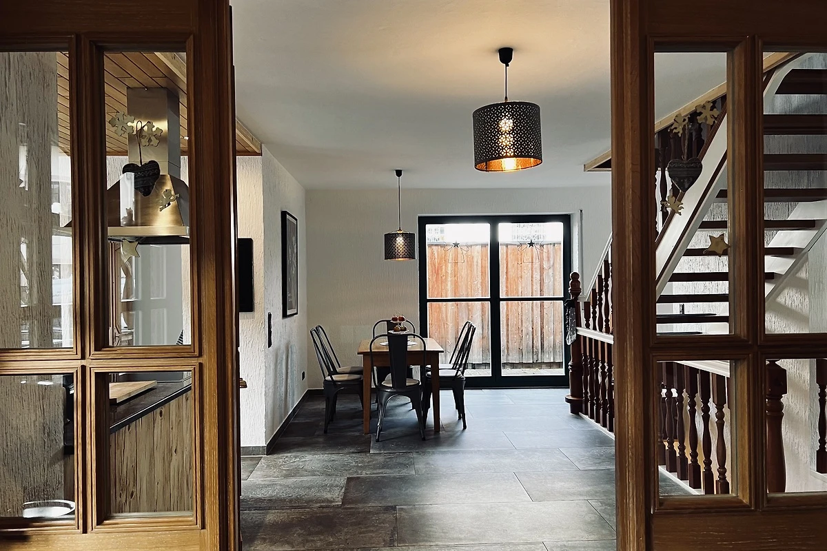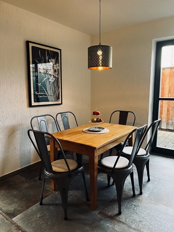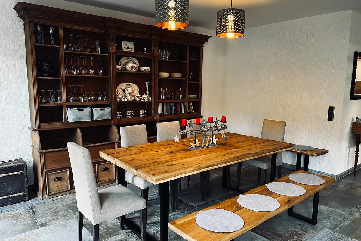 - einen geräumigen Essbereich mit großem Esstisch,