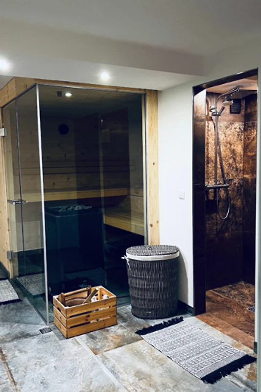 Zusätzlich stehen Ihnen eine große Sauna, zwei Spinning-Räder im Untergeschoss sowie der Hot-Tub auf der Terrasse zur Verfügung. Dieser Bereich kann nur von den Gästen des Ferienhauses "Nr. 34a" genutzt werden.