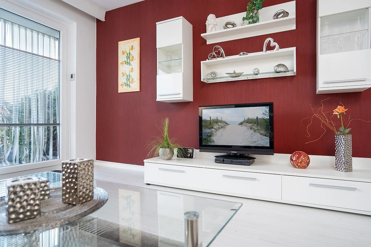 Die strandnahe Ferienwohnung in einer ruhigen Wohnanlage bietet auf ca. 45 qm Platz für bis zu 3 Personen. Das lichtdurchflutete Wohnzimmer ist gemütlich eingerichtet und verfügt über eine Schlafcouch, einen Essbereich sowie bodentiefe Fenster, die einen herrlichen Ostseeblick ermöglichen. Zur Unterhaltung stehen ein Flatscreen-TV und ein Internet-Radio bereit, ergänzt durch einen kostenlosen WLAN-Zugang.