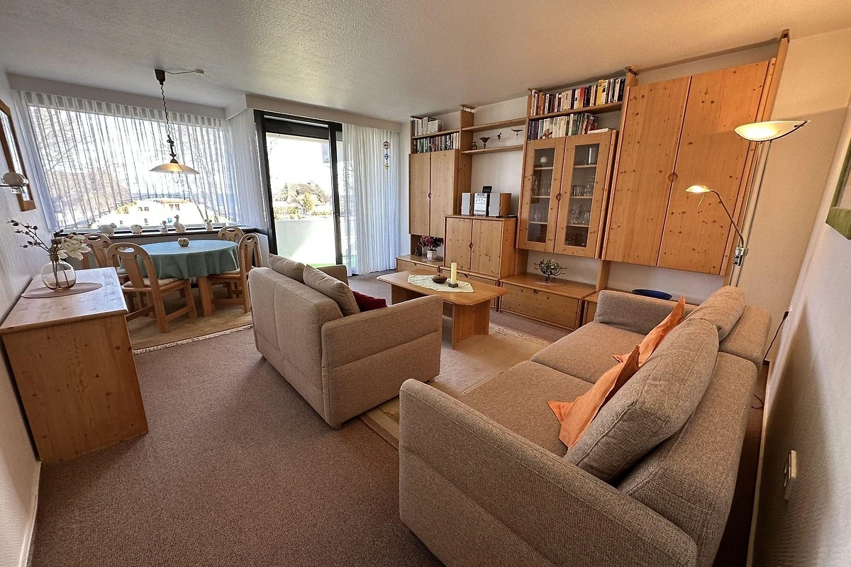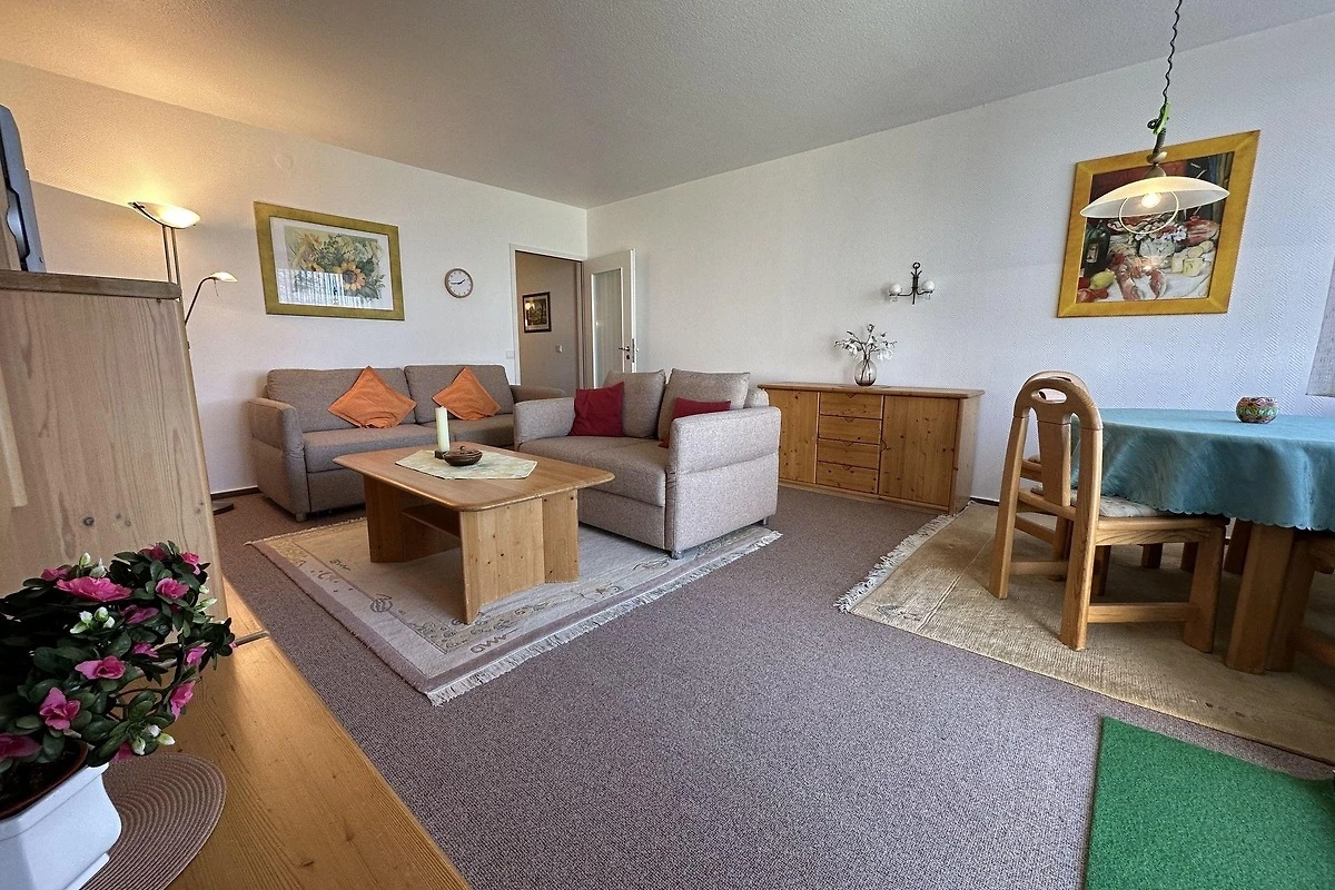 Das Wohnzimmer bietet eine 2er und 3er Sitzecke und einen Essbereich.