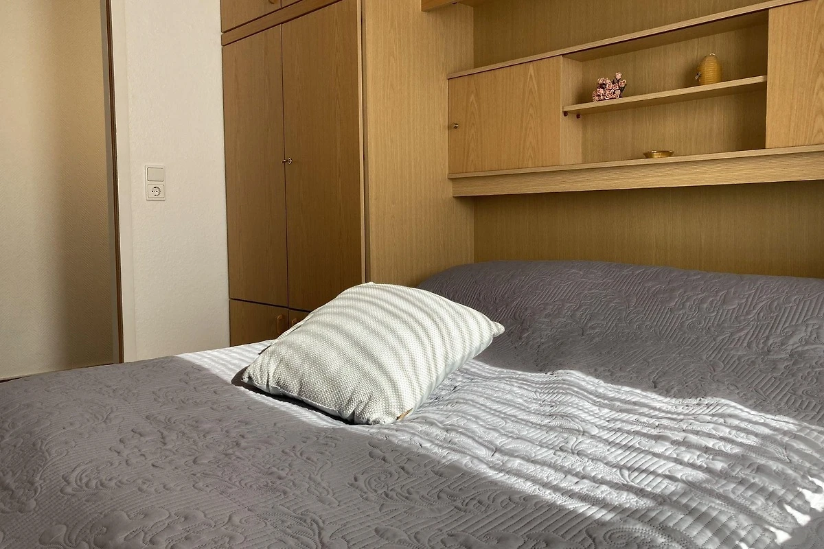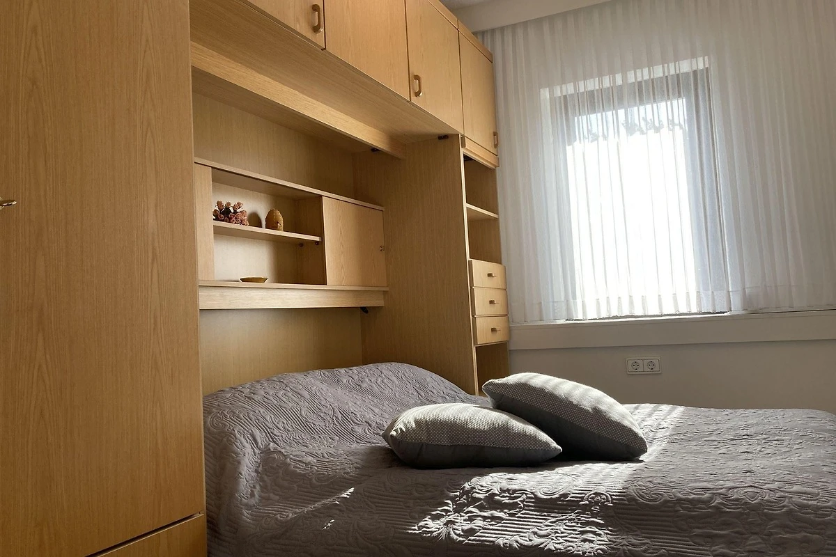 Das Schlafzimmer mit Schrankbett (2 Einzelmatratzen 80 x 200 cm) und viel Stauraum bietet 2 Schlafplätze.