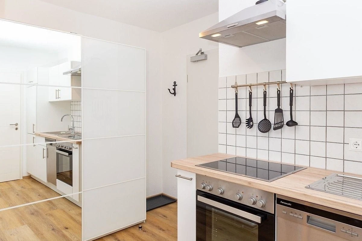 Die Ferienwohnung bietet eine komfortable und moderne Ausstattung, die jeden Aufenthalt zu einem angenehmen Erlebnis macht. Die helle Küchenzeile ist mit Geschirrspüler, Backofen, Mikrowelle, Kaffeemaschine und Toaster ausgestattet, sodass Selbstversorger ideale Voraussetzungen finden. Im Schlafzimmer befindet sich ein gemütliches Doppelbett, das für erholsame Nächte sorgt. Das Badezimmer ist mit einer Dusche ausgestattet und überzeugt durch Funktionalität. Für zusätzlichen Komfort stehen eine Waschmaschine und ein Wäschetrockner zur Verfügung. Ein eigener Parkplatz ist ebenfalls vorhanden und rundet das Angebot ab. Diese Ferienwohnung ist der perfekte Rückzugsort für entspannte Tage und bietet alles, was man für einen gelungenen Aufenthalt benötigt.