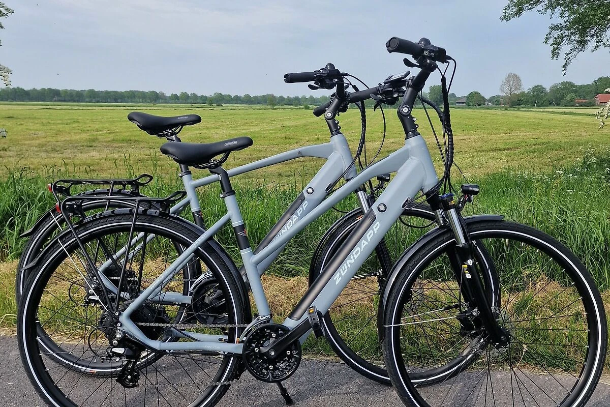 ! 2 moderne E-Bikes (Damen- und Herren) mit Gepäcktaschen können nach Absprache tageweise für zusammen 25 Euro gemietet werden !