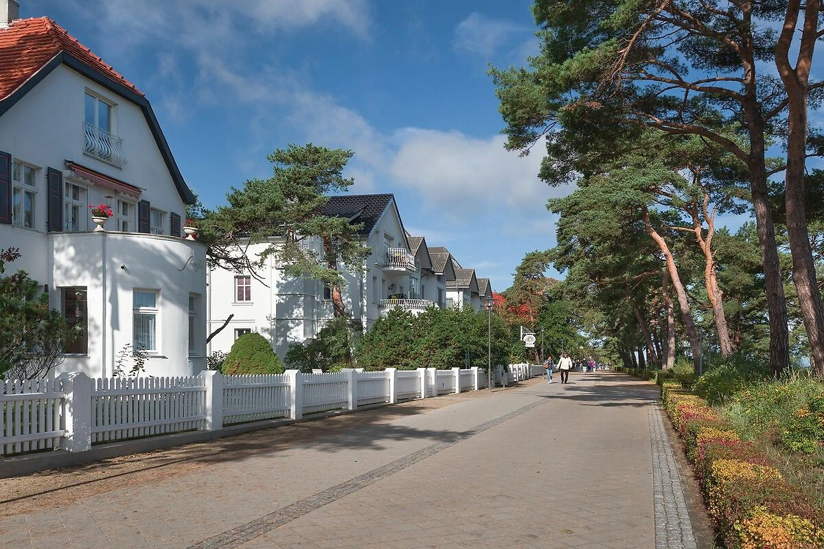 Heringsdorf, eines der prächtigen Kaiserbäder, besticht durch seine beeindruckende Bäderarchitektur, die seit Mitte des 19. Jahrhunderts Besucher aus nah und fern anzieht. Die eleganten Hotels und Villen mit ihren verspielten Fassaden und Türmchen erzählen von der glamourösen Vergangenheit als Sommerresidenz des Adels und der Berliner Gesellschaft.