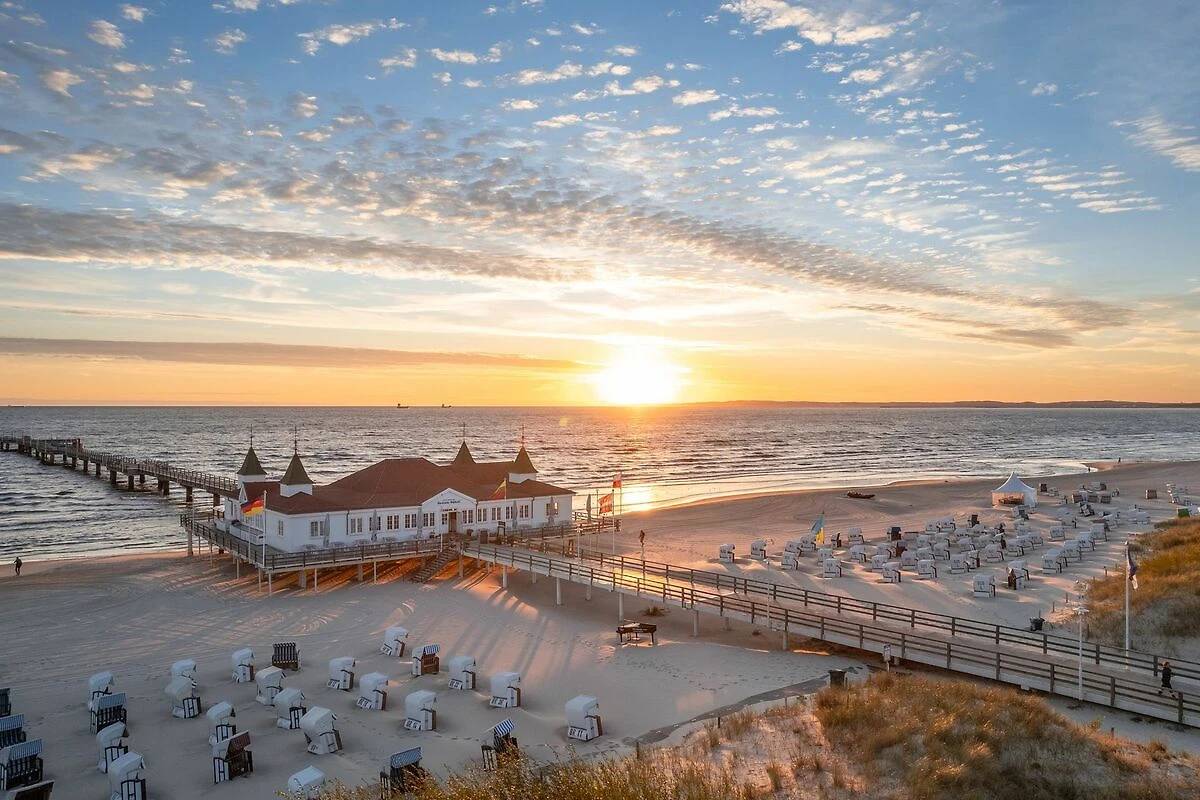 Die Seebrücke von Heringsdorf, eine der längsten Europas, ist nicht nur ein spektakulärer Anziehungspunkt, sondern auch das Herzstück des Ortes, das neben Zugang zum Meer auch vielfältige Einkaufs- und Gastronomieangebote bereithält. Umgeben von der natürlichen Schönheit breiter Sandstrände, Dünenlandschaften und Wäldern, bietet Heringsdorf ideale Bedingungen für Erholung und Aktivitäten im Freien.